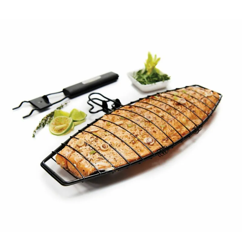 Превосходная тройная сетка для рыбы с высококачественным антипригарным покрытием . Антипригарное покрытие не даст продуктам пригореть, а эргономичная деревянная ручка убережёт руки от ожогов. Сетка достаточно больших размеров, она способна защищать продукты от пригорания. Одним словом такая превосходная долговечная, надёжная сетка обязательно должна быть у каждого любителя вкусной рыбки, потому что в ней она готовиться быстро и качественно.