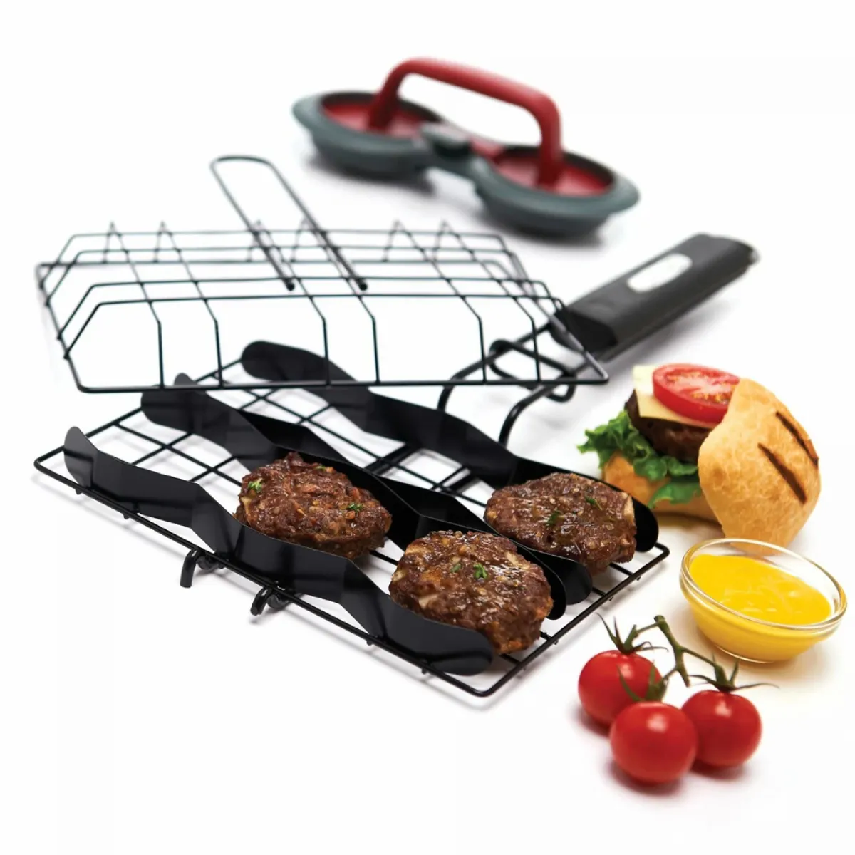 Особенности аксессуара для бургеров. Для чего вам необходимо купить сетку для бургеров в мангал? Для упрощения и ускорения процессов приготовления, а также для равномерной прожарки и прогрева. Антипригарная сетка позволяет четко зафиксировать отдельные элементы бургера, при этом еда не подгорает и не прилипает к решетке.