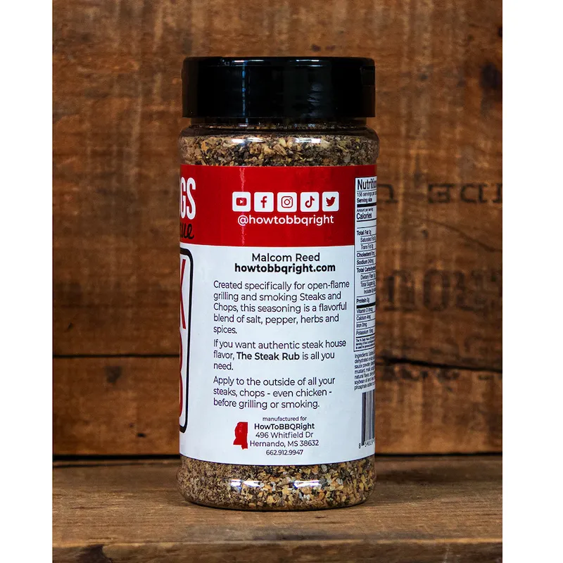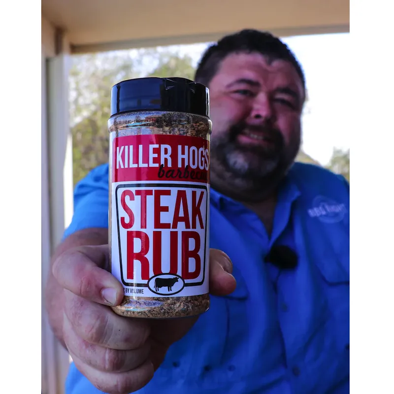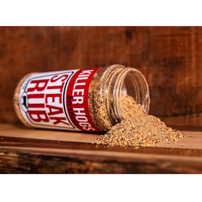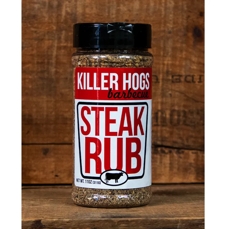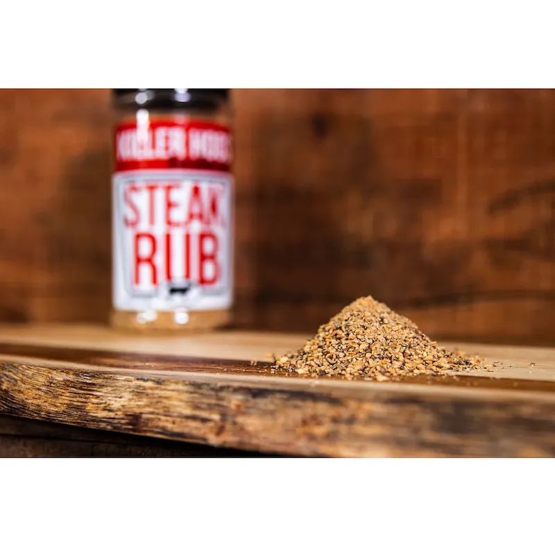 Созданная специально для жарки на открытом огне и копчения стейков и отбивных, эта приправа представляет собой ароматную смесь соли, перца, трав и специй. Если вам нужен настоящий стейк-хаус, попробуйте Steak Rub. Наносите на внешнюю поверхность всех стейков, отбивных, даже курицы, перед приготовлением на гриле или копчением. Состав: специи (красный и черный перец), соль, обезвоженный чеснок, обезвоженный лук, сахар, порошок вустерширского соуса (декстроза, целлюлозная камедь, горчица, яблочная кислота), модифицированный кукурузный крахмал, натуральный ароматизатор, обезвоженная петрушка, рафинированное соевое масло и т. д. Добавлено более 2% трикальцийфосфата для предотвращения слеживания. На производственном предприятии, где производится Killer Hogs, не используются продукты, содержащие древесные орехи. Продукты Killer Hogs не содержат глютен, но они не производятся без глютена.
