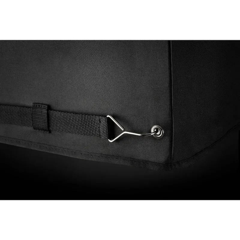 Регулируемые ремни с пряжками по бокам предотвращают смещение капюшона даже в ненастные дни, а специальные люверсы на капюшоне облегчают его хранение. Использует удобную застежку-липучку на передней части капюшона для легкого доступа к отсеку для хранения под грилем, а также для легкого накрытия и снятия гриля.