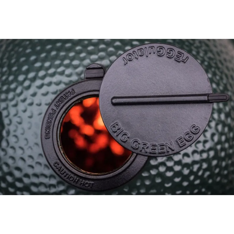 Новая вентиляционная крышка Big Green Egg rEGGulator ™ обеспечивает точный контроль температуры, который значительно превосходит другие контроллеры воздушного потока по точности и простоте использования. Благодаря изолированной регулировочной лапке для удобного использования.