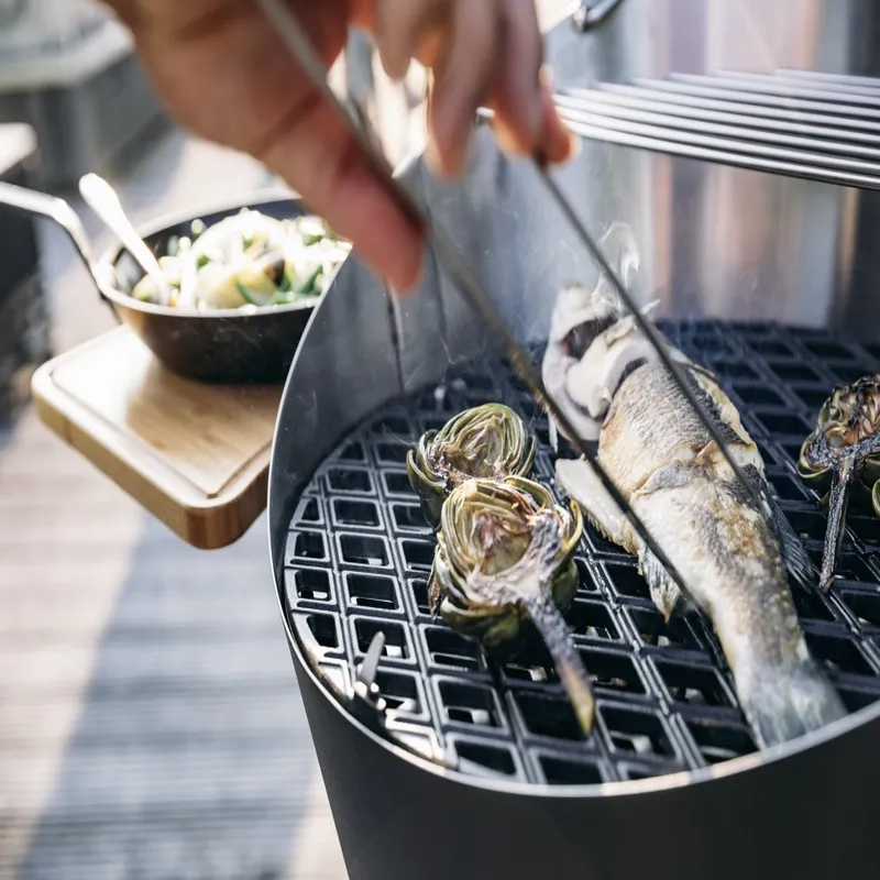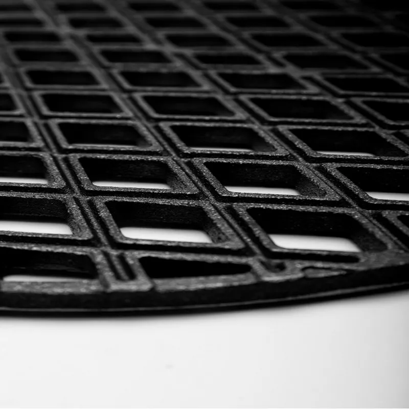 Чугунная решетка Hoefats Cone Health Grid - является незаменимым аксессуаром для гриля Cone. Состоит из двух частей: чугунной решетки и поддона из нержавеющей стали для капель. Решетки можно использовать отдельно без поддона для приготовления пищи. В комплект входит две чугунные решётки с двумя поддонами.