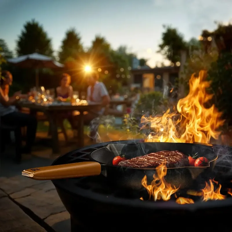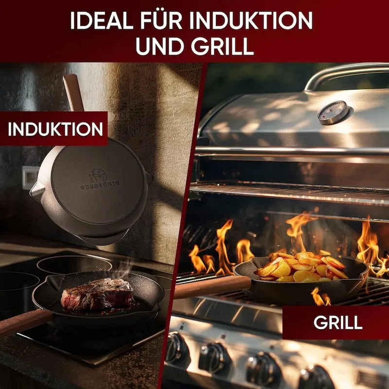 Чугунная сковорода идеально подходит для любых типов плит (газовый гриль, угли, огонь, духовка, индукционная плита, электроплита, газовая плита). Она обеспечит вам максимальное удобство независимо от способа приготовления.