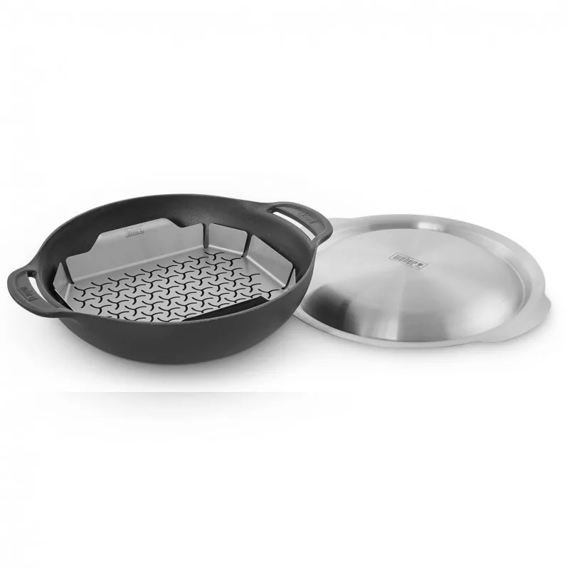 Чугунная сковорода Вок со вставкой-пароваркой и крышкой для Weber GBS