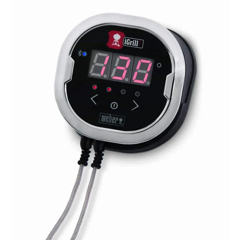 Цифровой термометр WEBER iGrill 2 обеспечивает точный контроль температуры блюд на гриле. К этой модели могут быть подключены сразу 4 щупа. Посредством Bluetooth® термометр передает данные о текущей температуре на смартфон или планшет в режиме реального времени. Благодаря мобильному приложению Weber iGrill можно легко получить желаемую степень прожарки стейков, ростбифов, птицы и других крупных мясных блюд.
