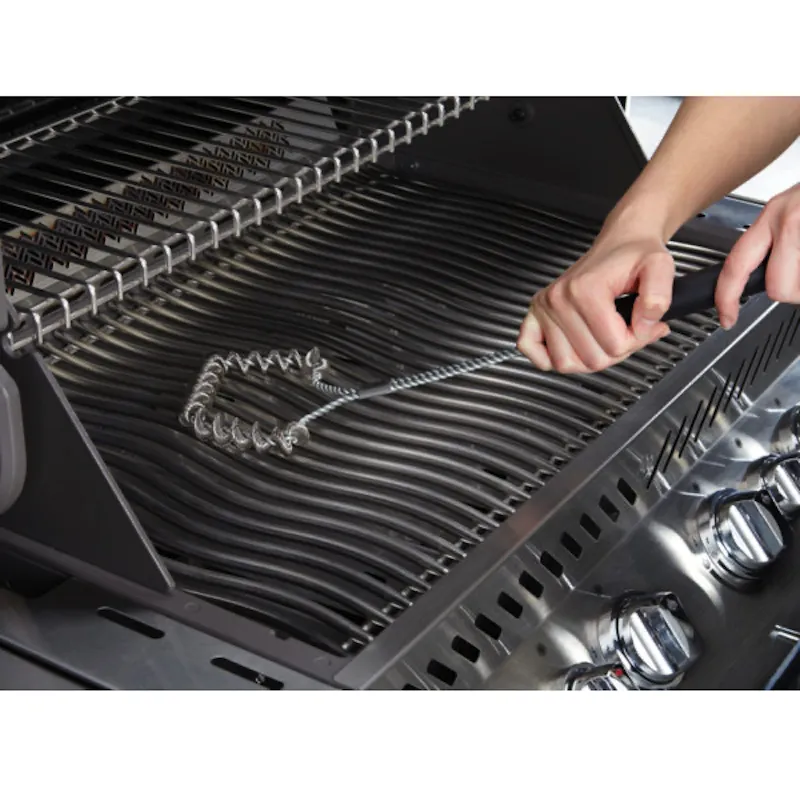 Спиральная щетка для чистки решетки гриля – важный аксессуар для каждого любителя готовки на свежем воздухе. Советуем остановить выбор на модели от Наполеон. Она имеет три стороны и изготовлена из нержавейки, благодаря чему отлично очищает решетки как в газовых, так и в угольных грилях. Аксессуар имеет удобную петельку, благодаря которой его можно подвесить и всегда держать под рукой.