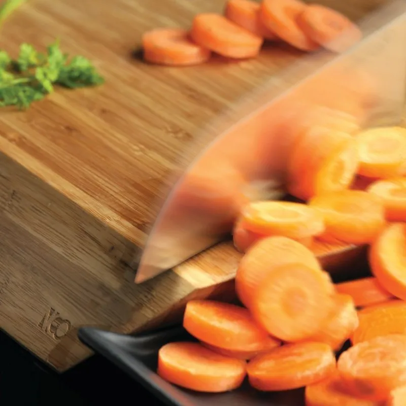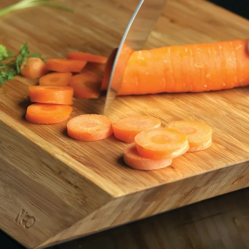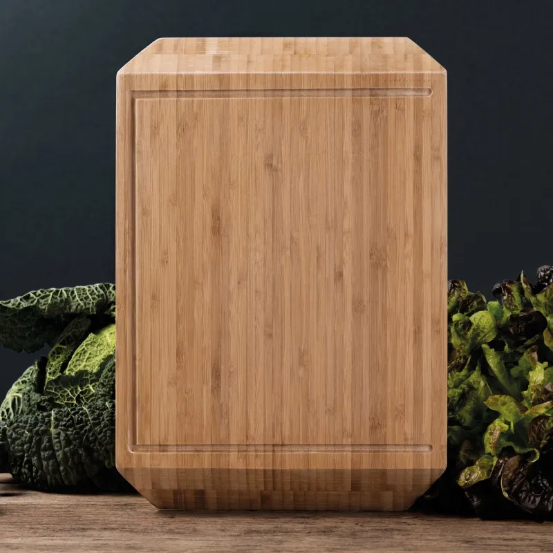 Материал - бамбук. Этот предмет из бамбука обработан специальным растительным маслом. Продуманный дизайн с коническими краями позволяет без каких-либо сложностей переместить нарезанные ингредиенты с доски. Размеры: 45 х 30 х 4 см.