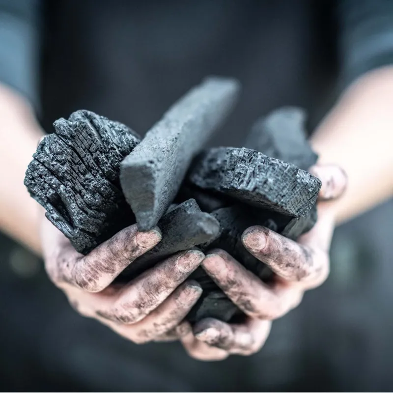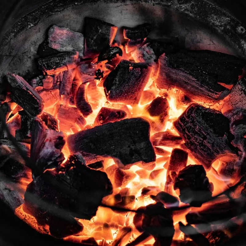 Натуральный древесный уголь из древесины дуба и дерева гикори. Такой уголь горит интенсивнее угля из других видов древесины и обеспечивает превосходную теплоотдачу. Не содержит угольной пыли и крупных воспламеняющихся кусков. Оставляет минимальное количество золы.