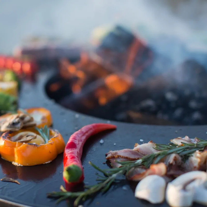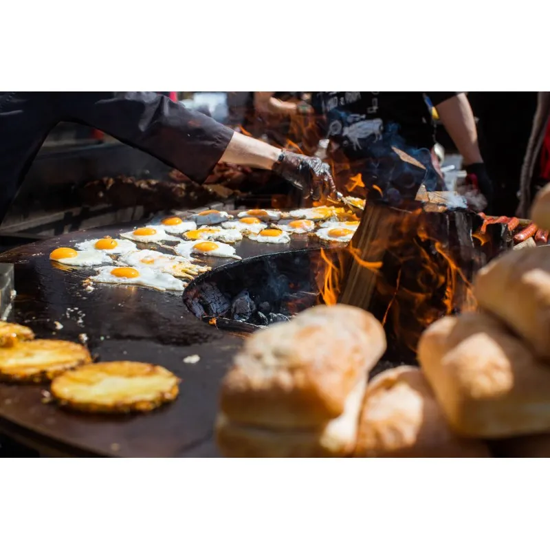 Поверхность для жарки AHOS выполнена в виде диска из высокопрочной углеродистой стали толщиной 10мм. Поверхность диска выполнена с небольшим загибом к центру очага, что, в свою очередь, препятствует вытеканию раскаленного масла за пределы гриля. На диск нанесено многослойное антипригарное полимерное органическое покрытие, которое предотвращает прилипание еды даже при очень высоких температурах. На жарочной поверхности AHOS можно с легкостью приготовить мясные и рыбные стейки, поджарить овощи гриль или грибы, и даже оладьи и яйца скрэмбл.
