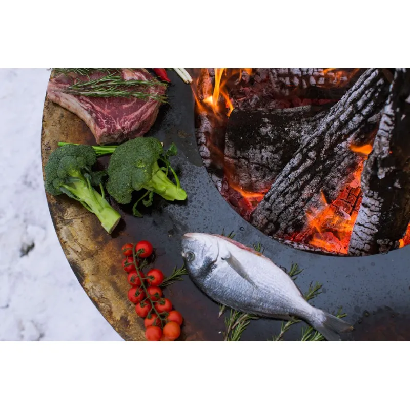 Мангал гриль AHOS прост в эксплуатации и может использоваться как мангал для дома, дачи, беседки, сада. Большая поверхность для приготовления еды обеспечивает круглому гриль-мангалу высокую производительность и позволяет готовить одновременно на 15-20 человек. AHOS отлично подходит как для спокойного домашнего вечера в саду у огня, так и для большого мероприятия или вечеринки. Конструкция гриля дает возможность всем желающим подойти и приготовить или разогреть еду, при этом не нужно ждать пока прогорят дрова и появятся угли, при использовании мангала AHOS необходимо просто поддерживать открытый огонь в очаге.