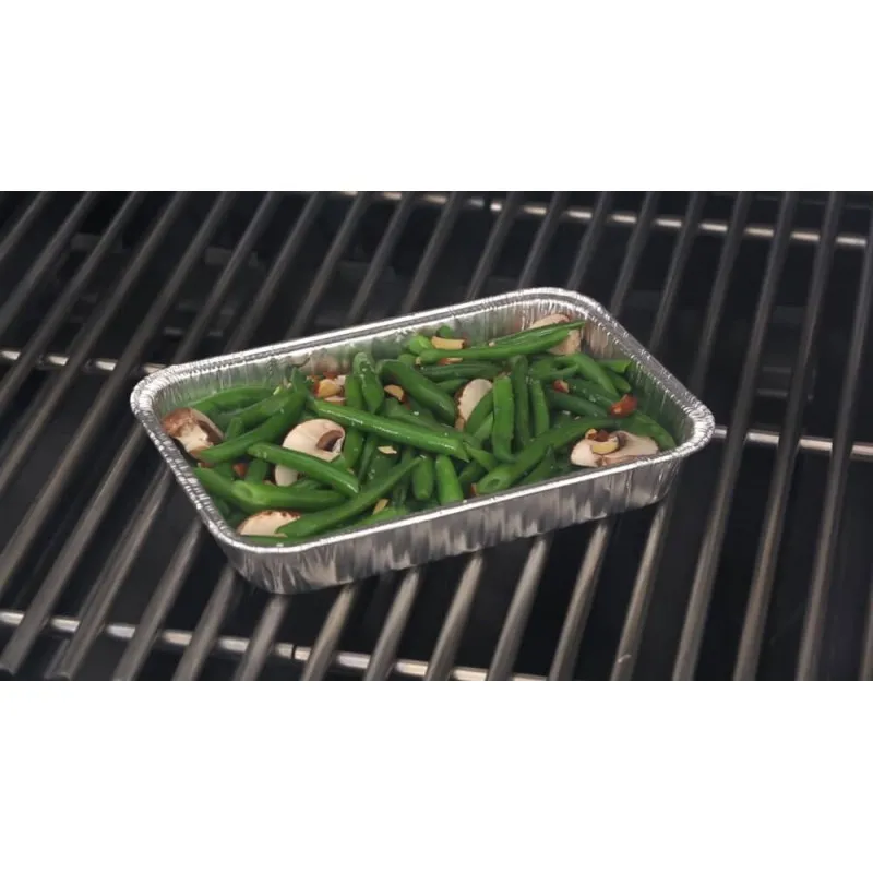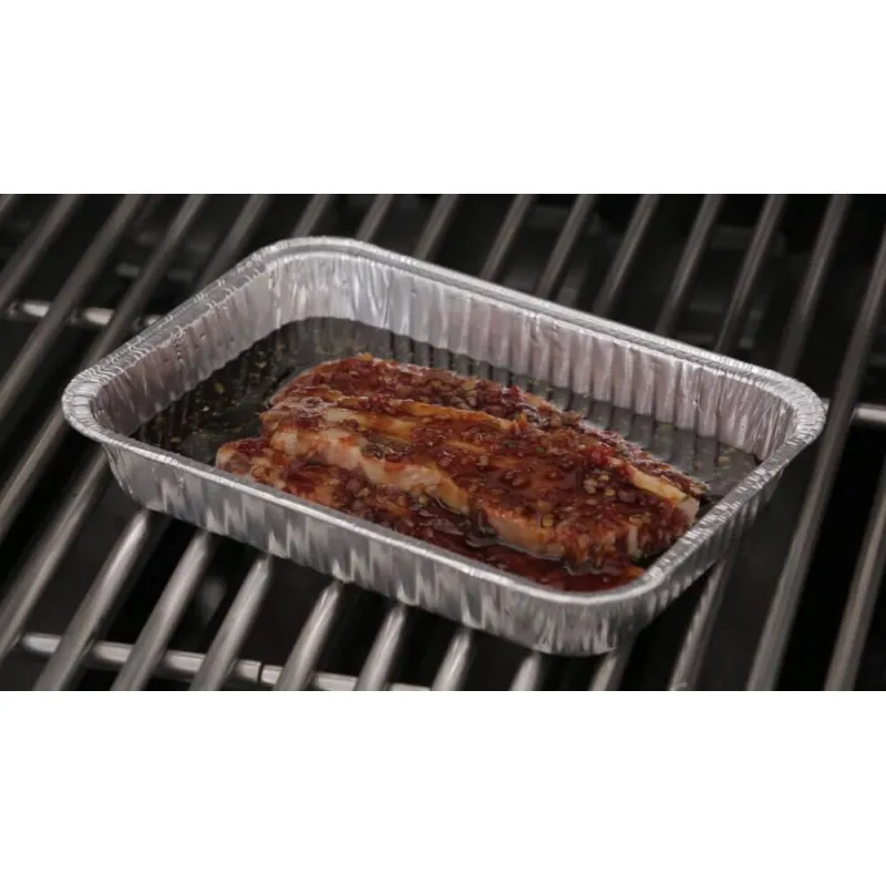 Емкость представляет собой поддон из фольги, устанавливаемый под решеткой гриля, в который стекает жир, во время приготовления блюд на косвенном жаре.