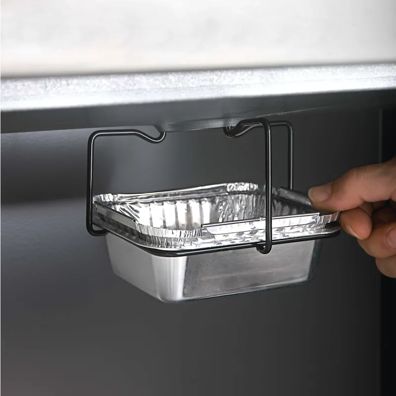 Эти емкости для жира Наполеон используются для сбора жира и мусора, который нельзя сжечь во время приготовления на гриле. Они вставляются в специальный проем сзади основания гриля и по наполняемости меняются на пустые.