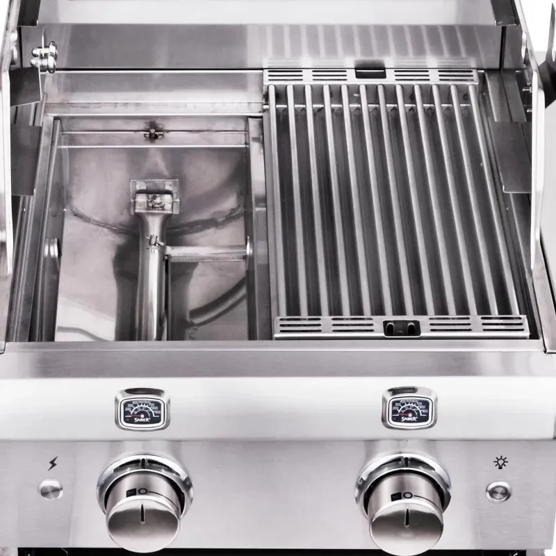 Качественная тройная изоляция и высокопрочная нержавеющая сталь AISI304 обеспечивают долговечность, а зеркально отполированные элементы придают грильнице газовой стильный вид. Эксклюзивная система гриля Saber обеспечивает гибкость в приготовлении пищи как при высоких, так и при низких температурах с равномерным нагревом, без возгорания и простой в использовании функциональностью.