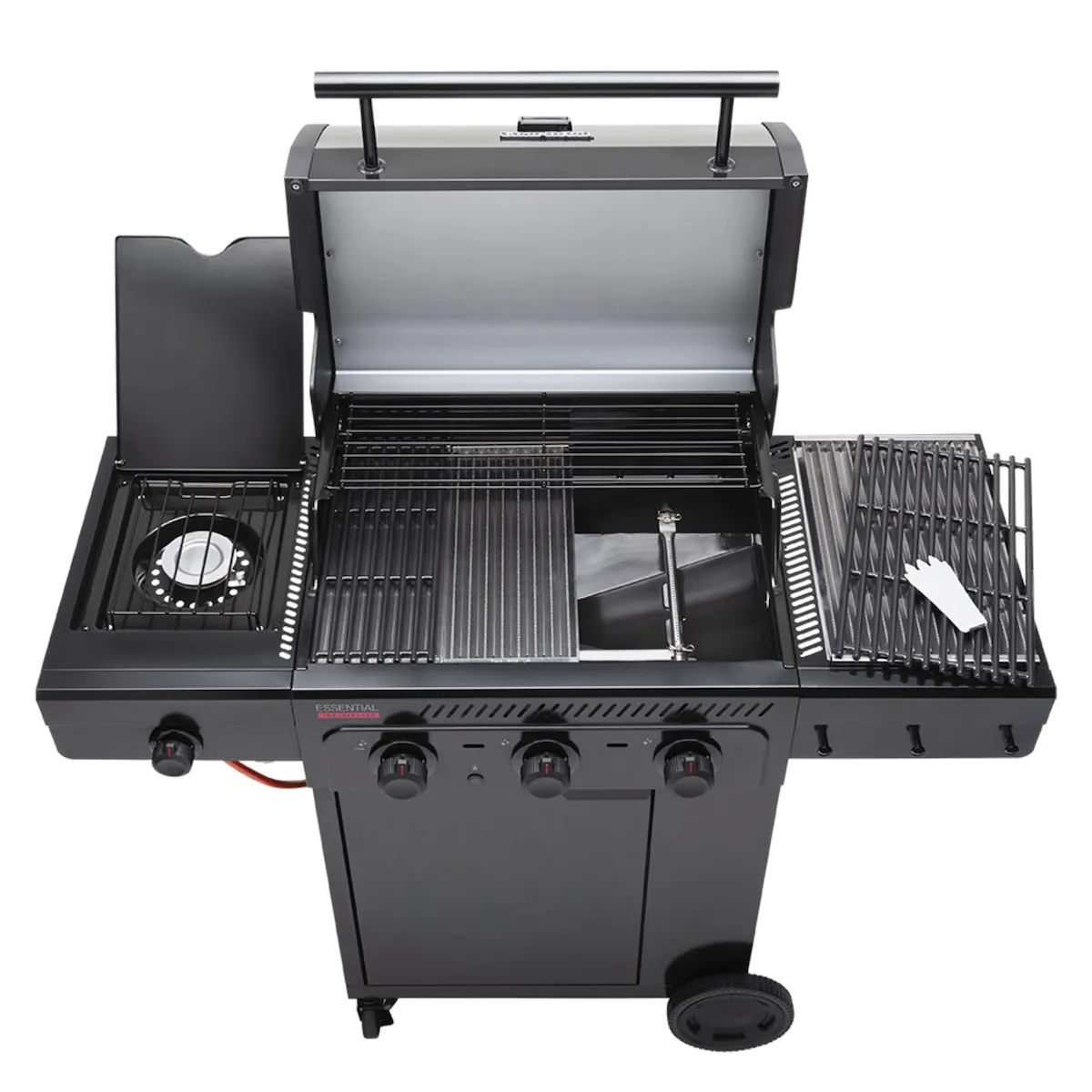 Газовый гриль Char-Broil Essential 3 G – идеальный выбор для начала работы с газовым грилем. Благодаря технологии TRU-Infrared™, которая делает пищу до 50% сочнее, а также большой рабочей поверхности, боковой горелке, электрозажиганию SureFire® и решетке для подогрева, он станет надежной основой для любых ваших кулинарных задач. Это современный универсальный гриль с двумя боковыми отсеками для хранения, подставкой и боковой полкой, которые предоставляют достаточно места для всего необходимого. Простое и беспроблемное приготовление на гриле: этот гриль имеет все, что вам нужно. А благодаря дополнительным аксессуарам, таким как поддон для угля, сковорода или вертел, вы можете легко превратить его в гибридный гриль для дополнительной универсальности.