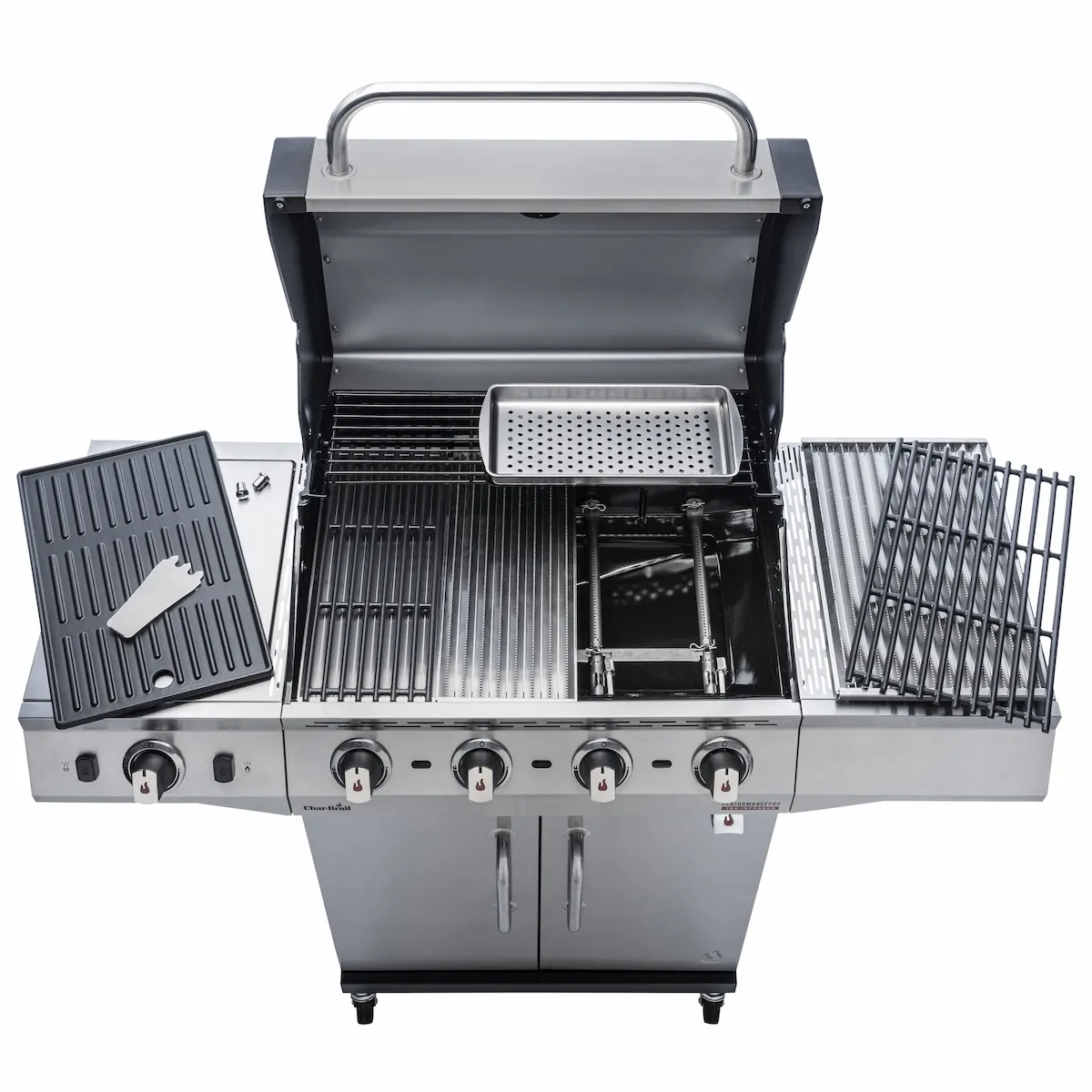 - Газовый гриль Char-Broil Performance PRO S 4 содержит дополнительную чугунную решетку, что предоставляет дополнительные возможности приготовления пищи и обеспечивает неограниченное наслаждение от приготовления на гриле. Вы можете использовать боковую горелку для приготовления домашних соусов или гарниров.