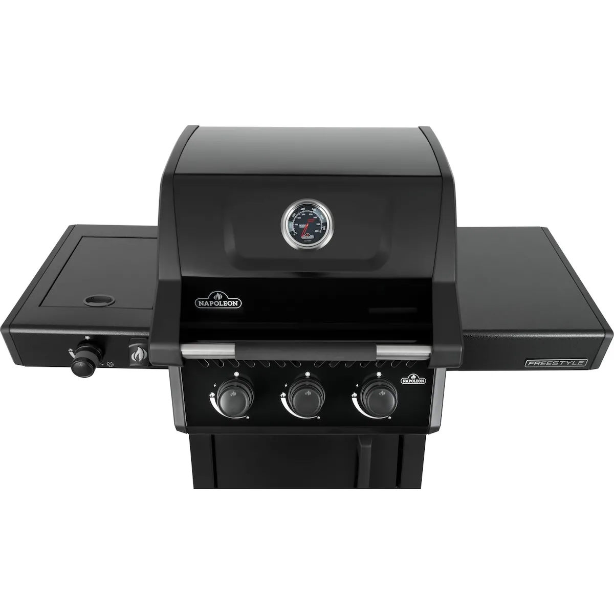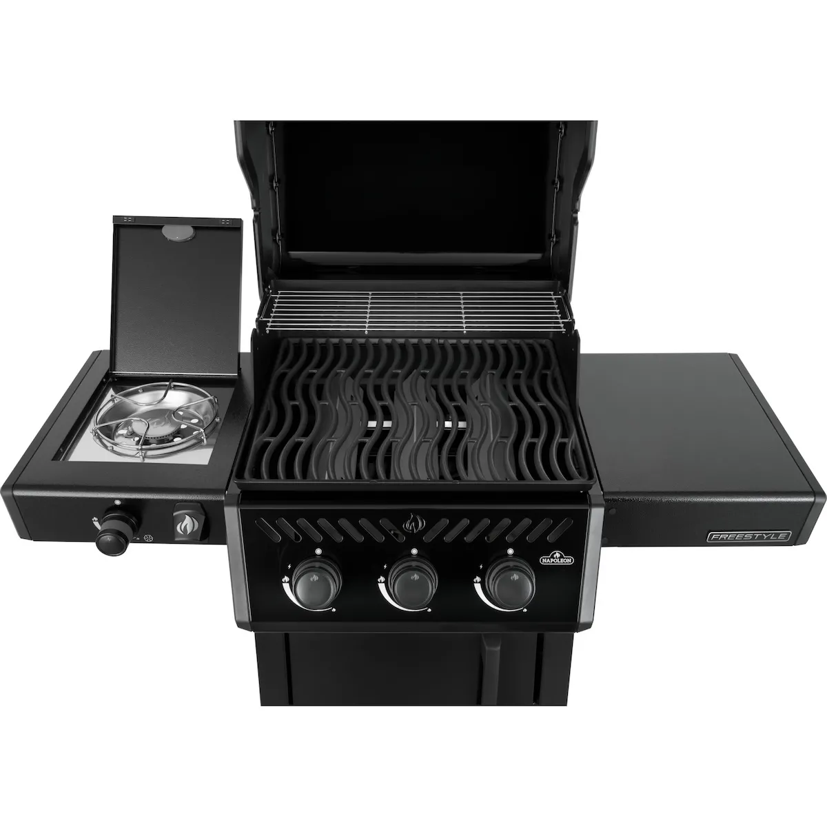 Газовый гриль Napoleon Freestyle 365 с боковой горелкой. Компактные размеры, высокая производительность и истинное удовольствие от приготовления на гриле в элегантном черном цвете: Napoleon Freestyle 365 — это новейшая модель в популярной серии Freestyle, разработанная для всех мастеров гриля, ценящих простоту. Благодаря трем мощным горелкам из нержавеющей стали, боковой конфорке, высококачественным чугунным решеткам для приготовления пищи и продуманным конструктивным решениям, он предлагает впечатляющую производительность в компактном формате — идеально подходит для патио, балконов или садов.
