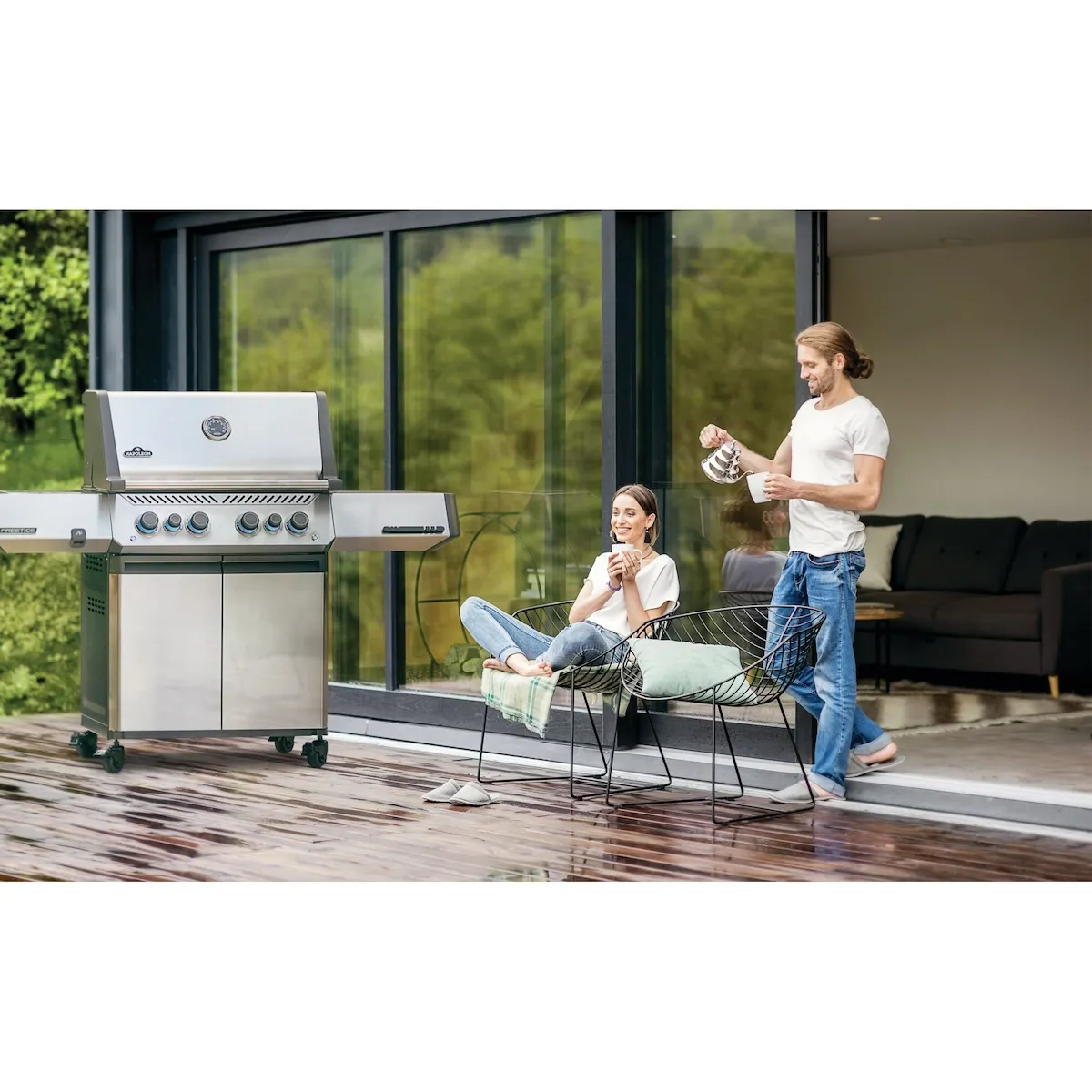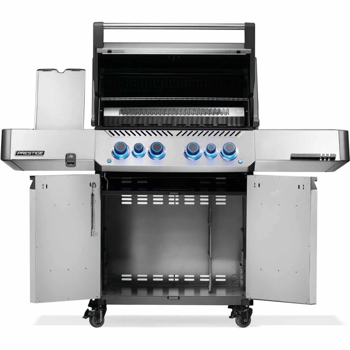 Napoleon Prestige 500 – с SIZZLE ZONE и задней горелкой. Napoleon Prestige 500 может похвастаться рядом технических и визуальных улучшений: сверхширокая инфракрасная задняя горелка, увеличенная зона SIZZLE, легко очищаемые решетки из нержавеющей стали WAVE толщиной 8,5 мм и складная решетка для подогрева из нержавеющей стали делают Prestige 500 первоклассным, полностью укомплектованным грилем.