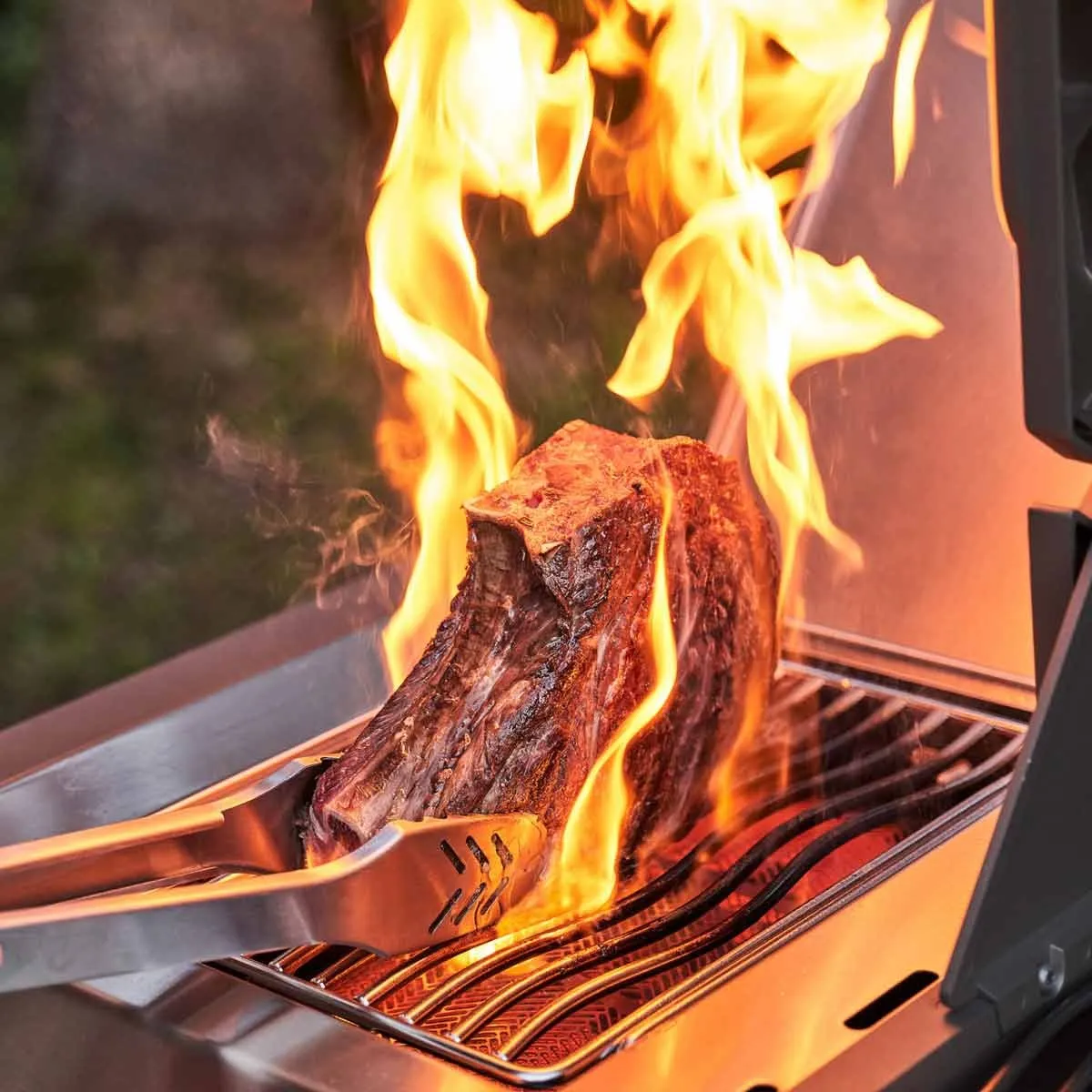 Инфракрасная боковая горелка SIZZLE ZONE. От 0 до 800 °C всего за 30 секунд! На инфракрасном гриле Napoleon SIZZLE ZONE мощностью 5 кВт вы можете придать своим стейкам и бургерам восхитительную корочку и аппетитный запеченный аромат с помощью инфракрасного жара — всего за несколько секунд. Незаменимая функция для всех любителей мяса — плавно регулируемая боковая горелка, которая также идеально подходит для приготовления хрустящих блюд в воке, гарниров и соусов. Зона SIZZLE ZONE нового гриля Prestige 500 оснащена регулируемой по высоте решеткой из нержавеющей стали и на 30% больше, чем у предшественника, — так что вы можете угостить своих гостей стейками размера XL. Для тех, кому нужно много места при приготовлении на гриле в зоне SIZZLE ZONE: крышка может быть утоплена в боковую полку для дополнительной свободы движений. Съемная защита от ветра и брызг обеспечивает комфорт и безопасность при приготовлении на высоких температурах. А когда зона SIZZLE ZONE не используется, вы можете закрыть ее вровень с крышкой из нержавеющей стали и использовать ее как дополнительное рабочее пространство.
