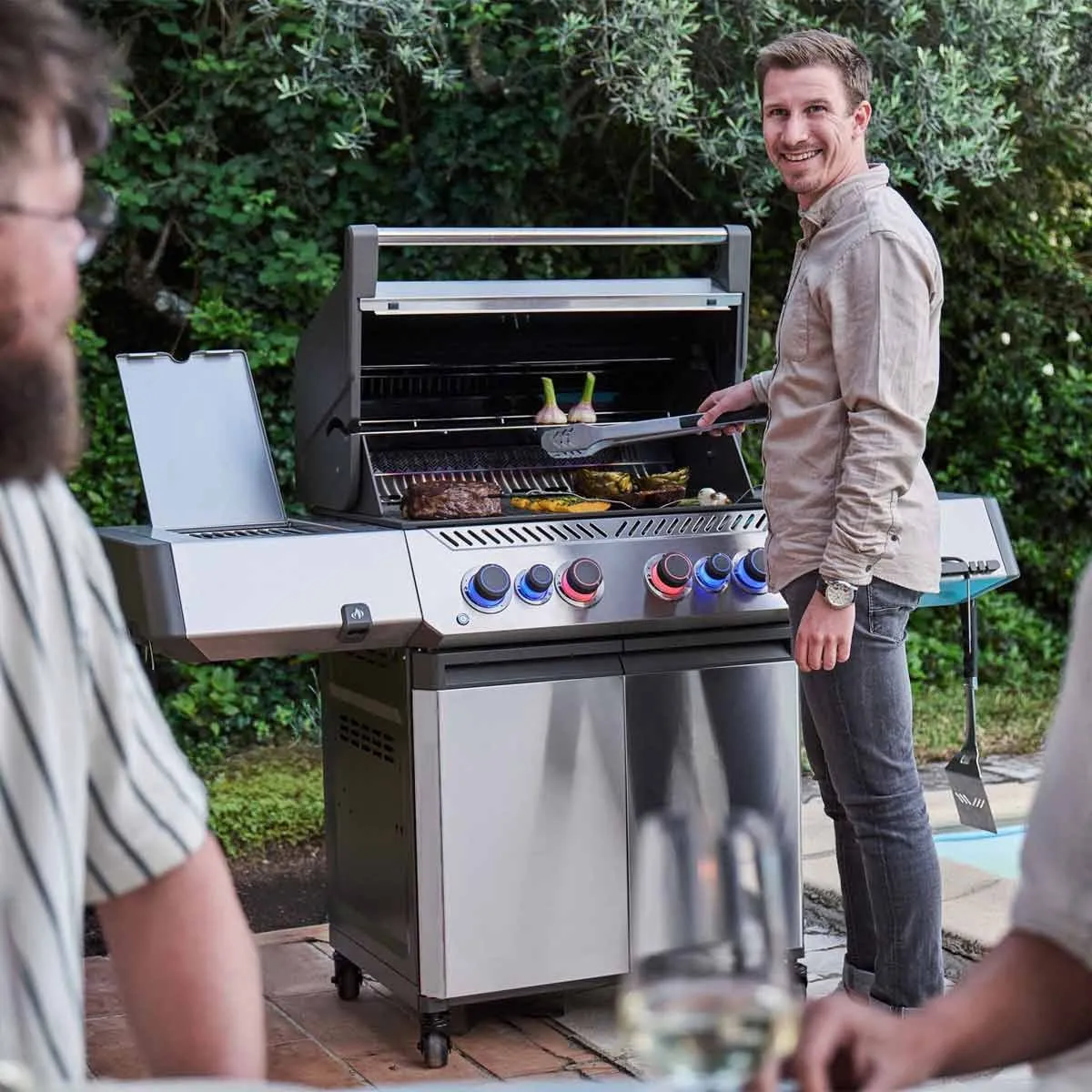 Но Napoleon Prestige также привлекает внимание: благодаря новому дизайну гриль выглядит минималистично и цельно. Боковые столики идеально выровнены с панелью управления, а удлиненная крышка с прямой ручкой и дверцы с горизонтальными утопленными ручками создают элегантный, обтекаемый вид.