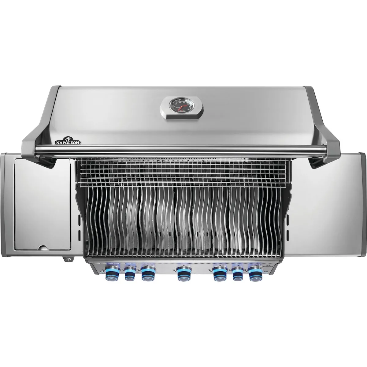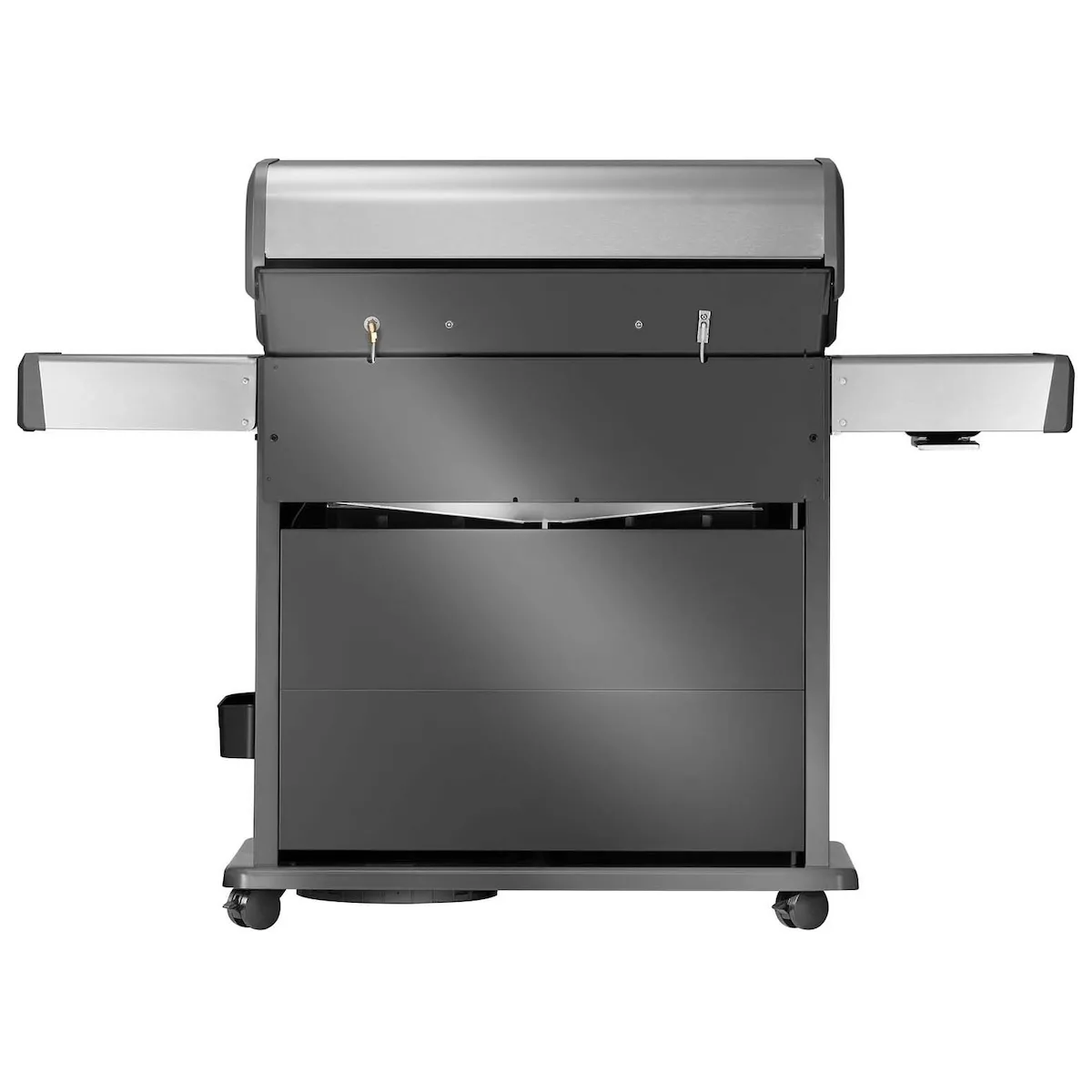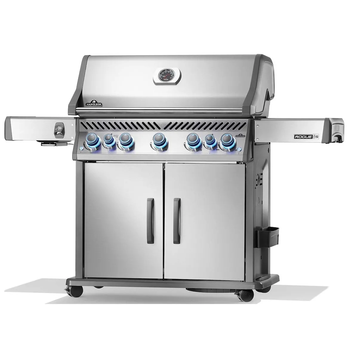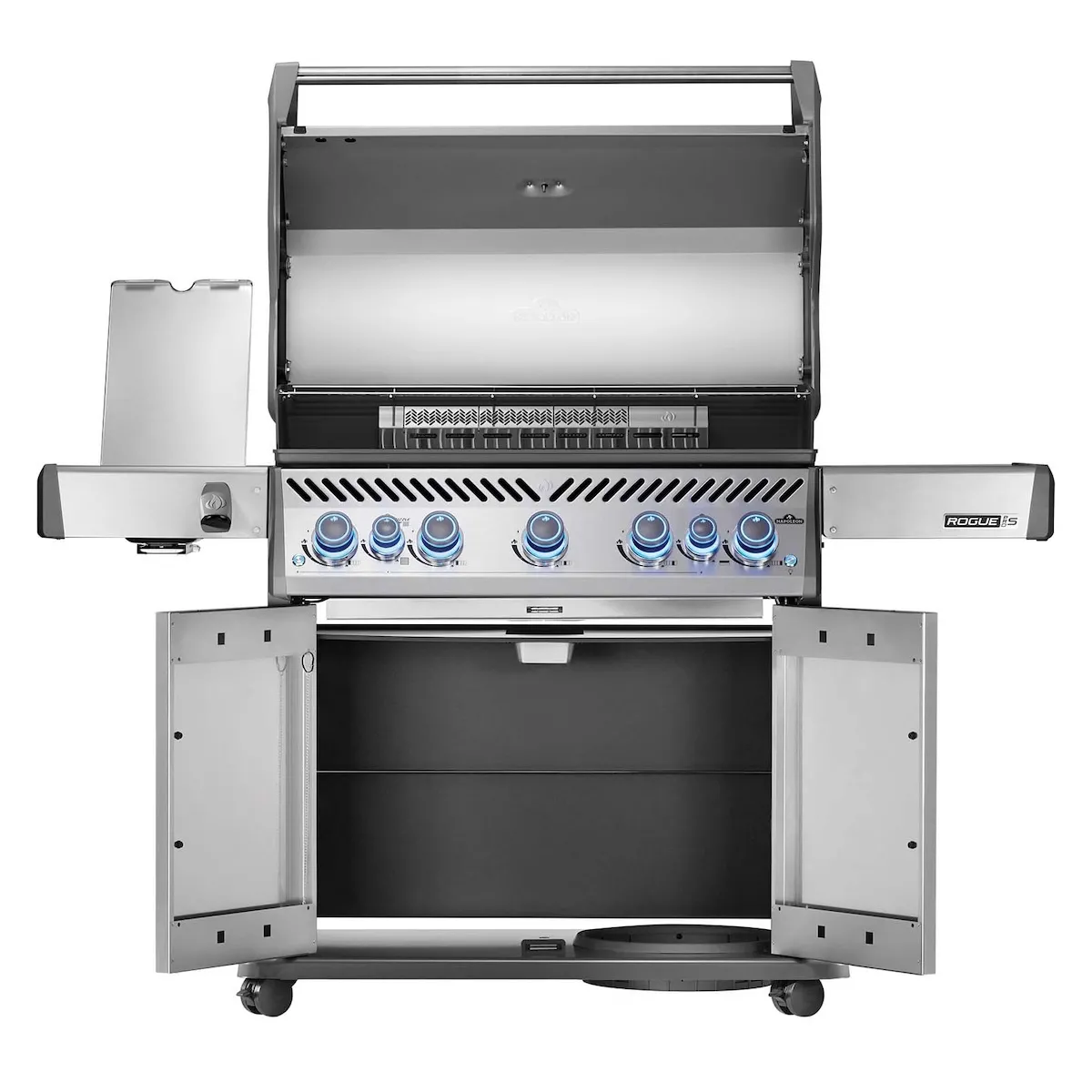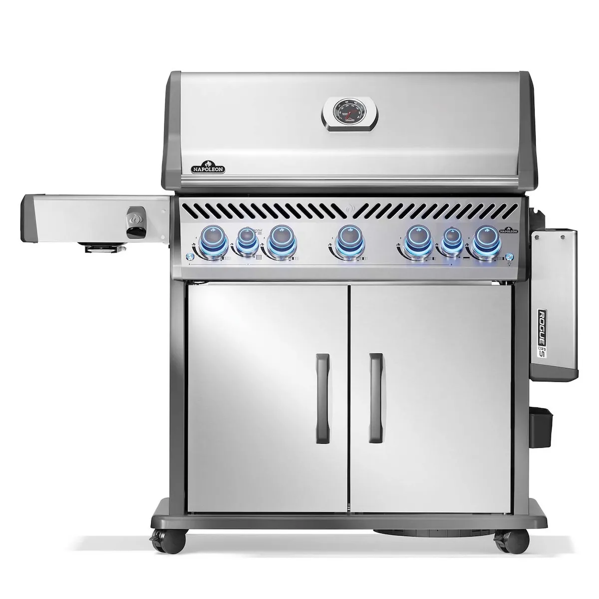 Napoleon Rogue PRO-S 625 оснащен вместительными боковыми столиками для принадлежностей для гриля, специй и аксессуаров. Правый столик складывается для экономии места, когда гриль не используется. Благодаря встроенным роликам гриль легко перемещать и использовать по своему усмотрению — идеально подходит для патио или сада.
