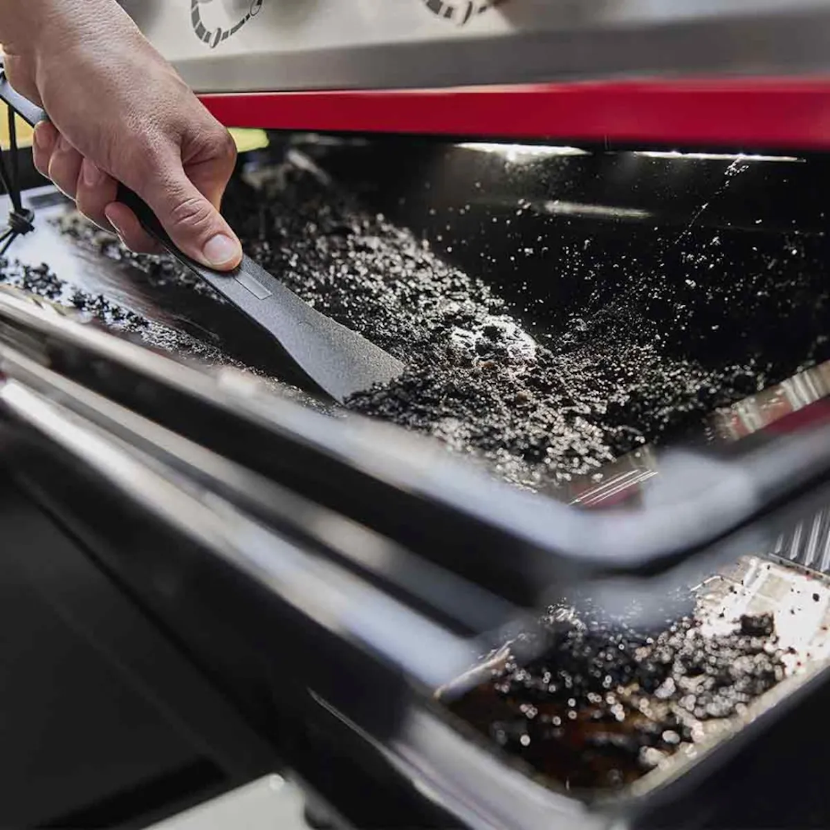 - Выдвижной эмалированный поддон для сбора жира. Лёгкий доступ и простота чистки — минимум усилий после готовки.