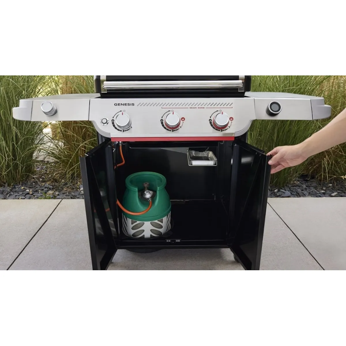 - Газовый баллон в закрытом шкафу. Большой шкаф не только скрывает баллон, но и обеспечивает аккуратный внешний вид и дополнительное место для хранения.