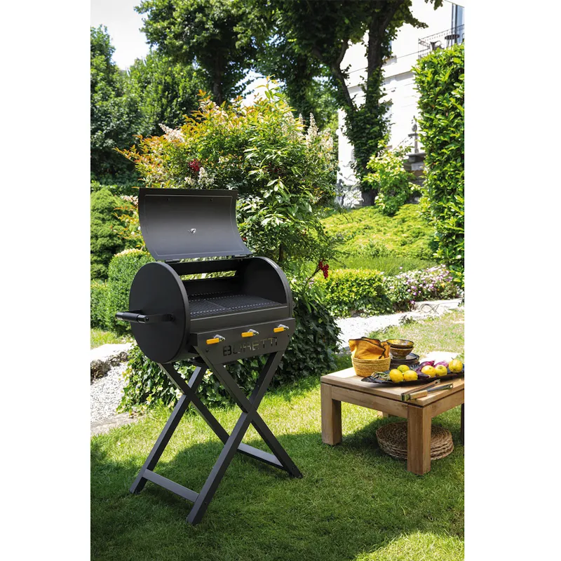 Мечтаете готовить быстро? Решение – Boretti Addizio, чистая, экономичная и удобная газовая альтернатива популярному угольному барбекю Fratello. Эта компактная модель – настоящая находка, надежная и простая в пользовании. Большие универсальные чугунные поверхности, три газовые горелки, прочная, долговечная крышка, стойкая к нагреву и ржавчине, со встроенным в нее термометром – есть все условия, чтобы варить, жарить, запекать! Приятные и полезные детали – термостойкие ручки для легкого перемещения и съемный поддон для пепла, гарантирующий удобную чистку.