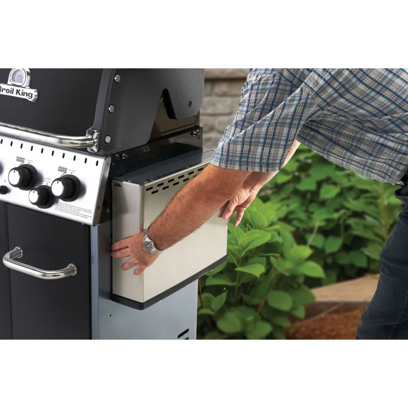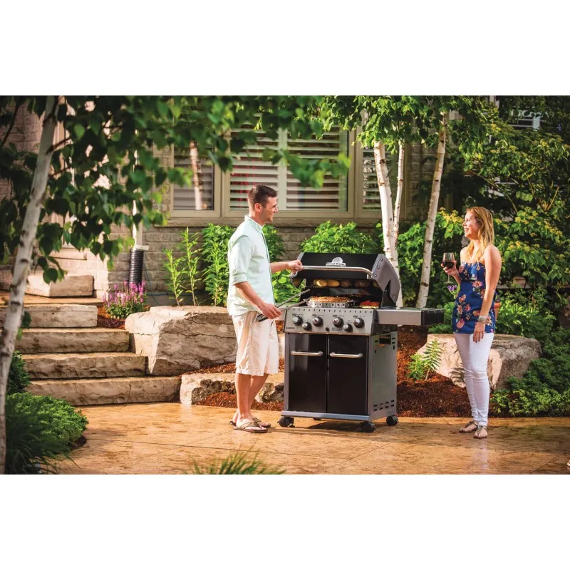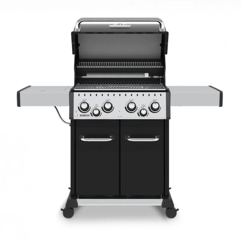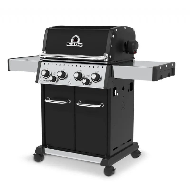 Газовый гриль Broil King® Baron™ 490 это самый популярный и самый продаваемый гриль серии Baron. Привлекательный дизайн, складные полки, двухсторонние чугунные решетки, задняя горелка и электромотор вертела делают этот гриль максимально универсальным. Обновленная в 2020 году модель гриля теперь включает подсветку ручек, топку из литого алюминия, возможность установки решеток в трех положениях и многое другое. Большая решетка 65 см x 44 см и 4 мощных горелки Dual-Tube позволят готовить для большой компании и сделают гриль Broil King Baron 490 приятным дополнением вашего сада. Гриль изготовлен в США, обладает отличной гарантией и прослужит не одно десятилетие.