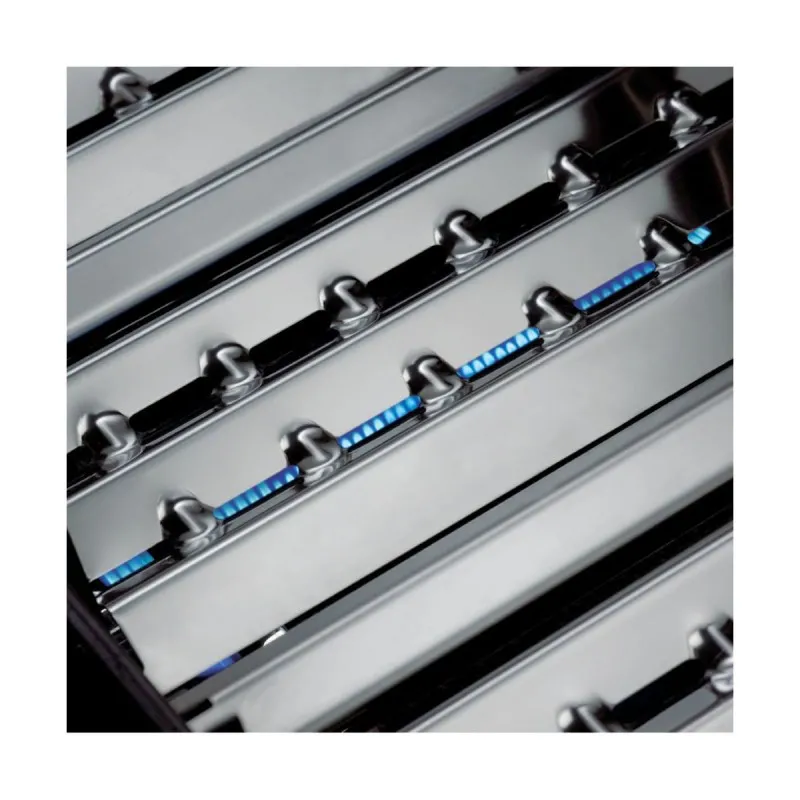Гриль уличный газовый – это идеальный результат, даже если готовить продукты прямо на краю решетки для барбекю. Flav-R-Wave служит щитом, который защищает находящуюся под ним горелку от капель жира, испаряя жидкости и возвращая влагу и ароматизаторы обратно в мясо. Горелка управляется клапанами «линейного потока», которые позволяют точно контролировать температуру внутри барбекю.