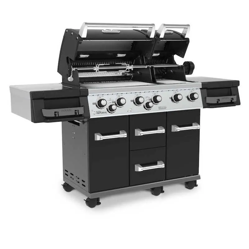 Элегантность и стиль. Производители Broil King гриля на газу создали модель Imperial 690 XL для настоящих гурманов и профессионалов. Она отличается элегантным соединением черного и металлического цвета, идеальным продуманным дизайном, практичностью и функциональностью. Каждая деталь сделана из нержавеющей стали и литого алюминия, поэтому он надежный и долговечный.