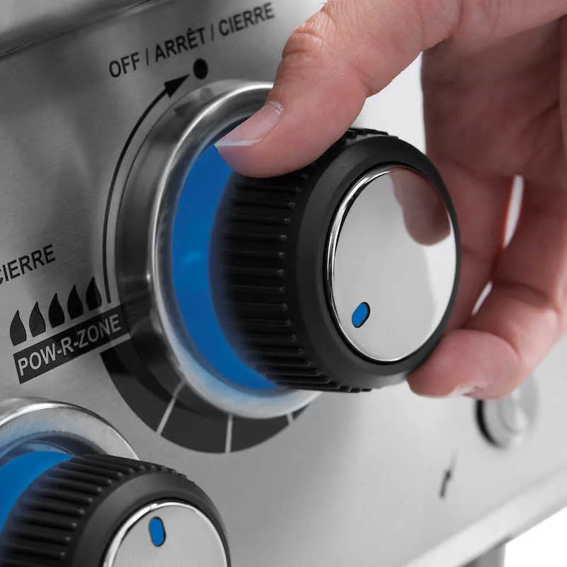 Мощная задняя горелка из прочной нержавеющей стали 430 превращает приготовление блюд на гриле в незабываемое впечатление. Поскольку задняя конфорка распространяется по всей поверхности гриля, можно без проблем приготовить от двух до трех цыплят одновременно.
