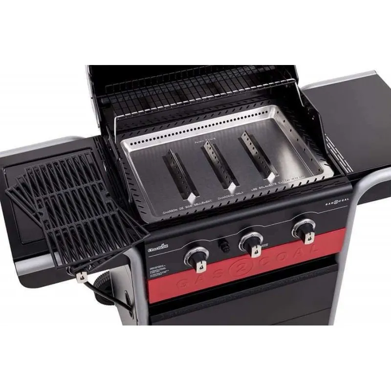 Какой гриль выбрать, газовый или угольный? Революционный газово-угольный гибридный гриль. Если Вам сложно определиться с типом топлива, обратите внимание на гибридный газо-угольный гриль Char-Broil Gas2Coal. C мультитопливным грилем Char-Broil Hybrid Gas2Coal не нужно выбирать. В качестве источника тепла здесь можно использовать как газ так и уголь. На первый взгляд, это полноценный газовый гриль на 3 горелки с боковой конфоркой. Но стоит только заменить защитные пластины газовых горелок на специальный поддон для угля — и Ваш гриль уже угольный! И это еще не все: газовые горелки с электронным зажиганием SureFire разожгут Ваш уголь до рабочей температуры менее чем за 60 секунд.