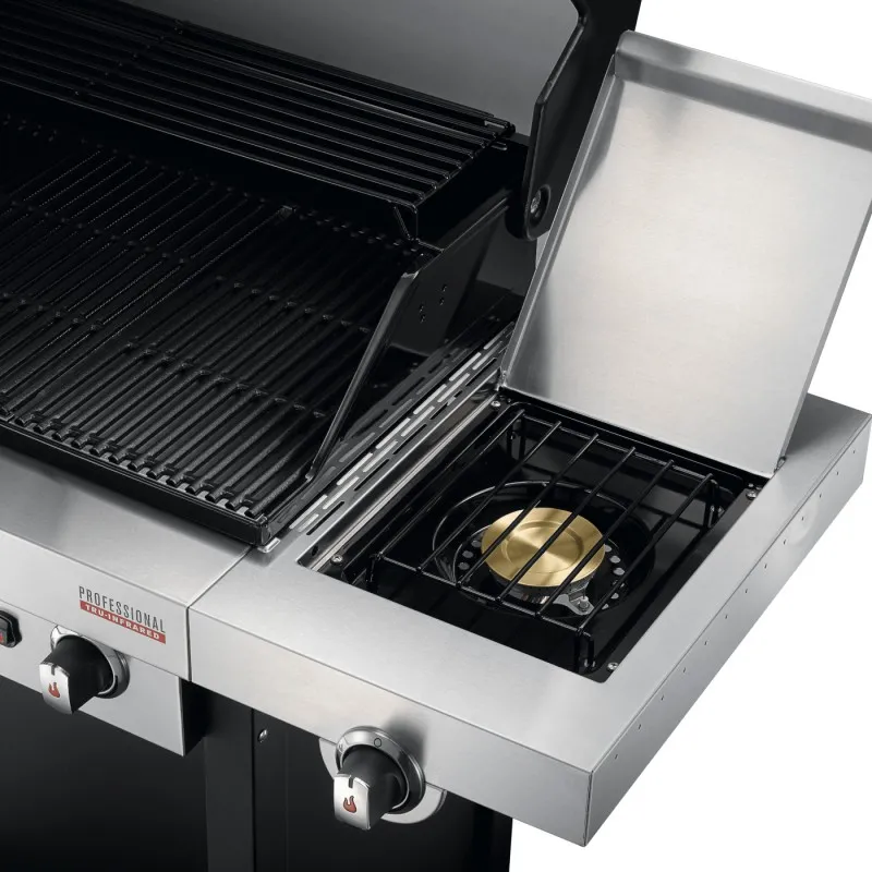 Компактный стационарный гриль Char-Broil Professional Black 3 Burner оборудован всеми функциями больших моделей и рабочей поверхностью, достаточной для семьи или небольшой компании. При этом он занимает значительно меньше места. Складываясь, боковые полочки уменьшают пространство, необходимое для его хранения в два раза. Гриль оборудован 2-мя горелками с отдельным термометром и электронным зажиганием SureFire для беспроблемного старта при любой погоде. Скрытые колеса с фиксацией обеспечивают быстрое перемещение. К другим достоинствам относится особая система рассеивания тепла над горелками TRU Infrared, когда вся площадь под рабочей решеткой занята перфорированной металлической пластиной сложной формы, которая нагреваясь от горелок равномерно распределяет тепло на рабочие решетки. Гриль оборудован конфоркой, вмонтированной в боковой столик.