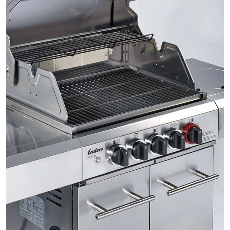Четкие и выразительные формы Enders Kansas Pro 3 SIK Turbo отражают его принадлежность к премиум-классу, а внушительный набор функций – настоящая мечта любого кулинарного гурмана! Обновленная модель 2020 года теперь имеет еще более устойчивый корпус, новые эргономичные регуляторы подачи газа, массивную крышку из качественной нержавеющей стали и еще более мощную горелку HEAT RANGE® в TURBO ZONE® - 4,2 кВт!