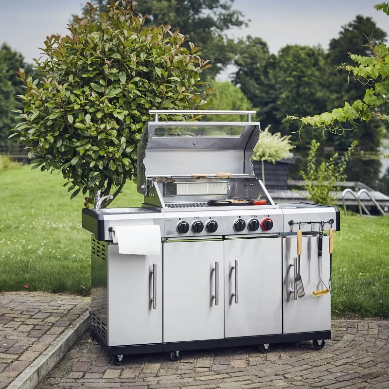 Почему именно этот гриль? Kansas Pro 4 SIK Profi Turbo – агрегат немецкой компании Enders. В нем сочетается все, что нужно опытному кулинару: многофункциональность, надежность, большая рабочая поверхность и удобство в использовании. Страстные энтузиасты барбекю действительно оценят это оборудование со встроенной мойкой, обширным пространством для хранения в основании и новейшими инновационными технологиями.