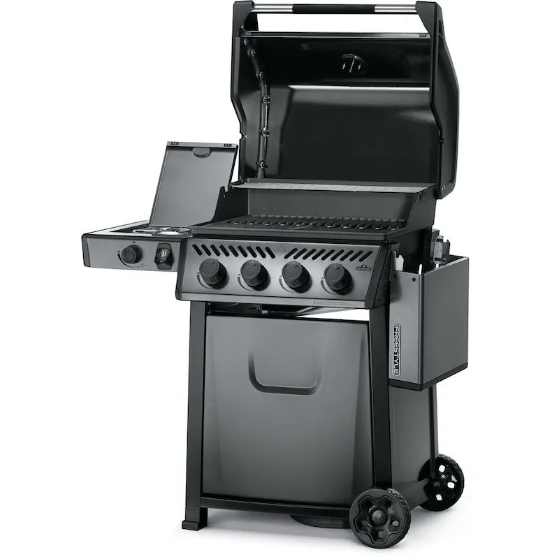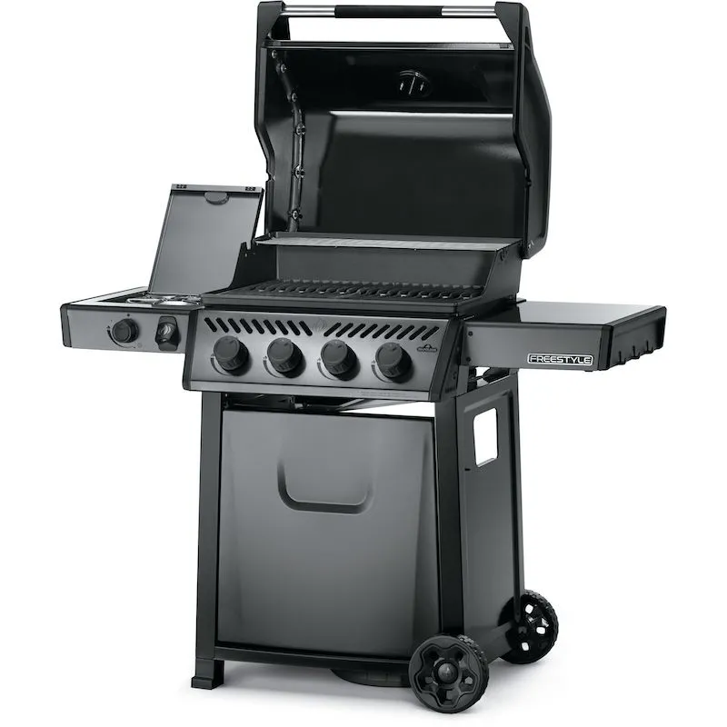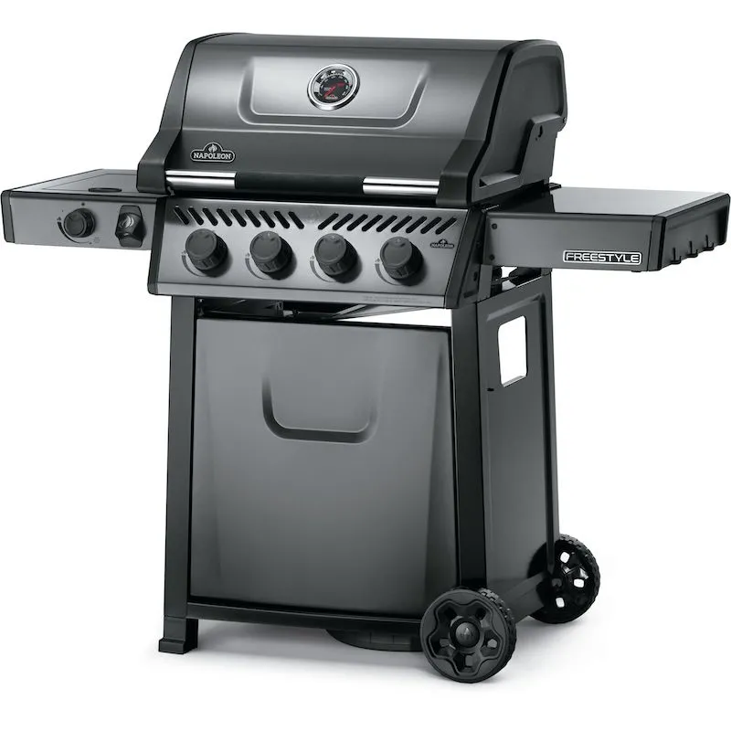 Газовый гриль Napoleon Freestyle 425 графитовый с боковой конфоркой и передней панелью. Нужна компактная станция для гриллинга? Тогда вам стоит купить гриль наполеон Фристайл. Устройство оснащено четырьмя основными конфорками и одной боковой. Несмотря на скромные параметры эта модель характеризуется высокой производительностью. Используя её, выбудете получать максимум удовольствия от приготовления блюд.