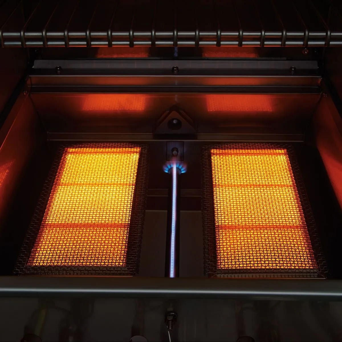 Вторая камера оснащена двумя керамическими инфракрасными горелками, которые нагреваются за секунды и идеально подходят для обжаривания стейков ресторанного качества.