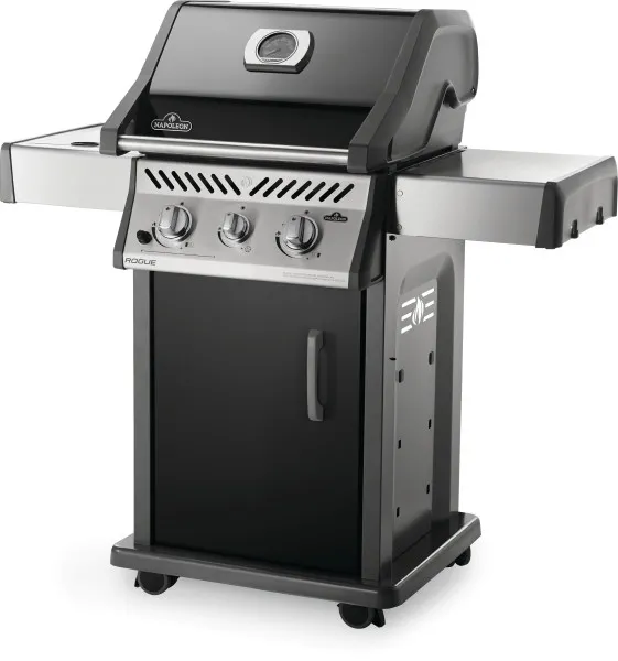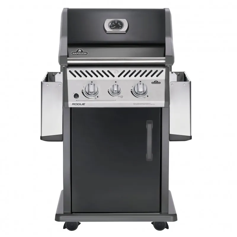 Газовый гриль Napoleon Rogue 365SB в черном цвете привлекает любителей барбекю своими небольшими габаритами, простой и надежной конструкцией и высоким качеством материалов. Корпус гриля изготовлен из высококачественной стали с фарфоровым покрытием. Две основные трубчатые горелки из нержавеющей стали. Для равномерного распределения жара защитные пластины над горелками размещены на двух уровнях. Дополнительная боковоя горелка на складном столике. Система мгновенного зажигания JETFIRE быстро вводит гриль в эксплуатацию. Двусторонние чугунные барбекю-решетки запатентованной волнистой формы WAVE. Дополнительная решетка для подогрева. Крышка гриля оборудована термометром ACCU-PROBE. Оба боковых складных столика имеют крючки для подвешивания аксессуаров. Закрытое нижнее отделение с углубленной нишей для газового баллона. Гриль передвигается на колесах, которые имеют надежные фиксаторы. Газовый гриль Napoleon Rogue 365SB - это отличное соотношение цены и качества.