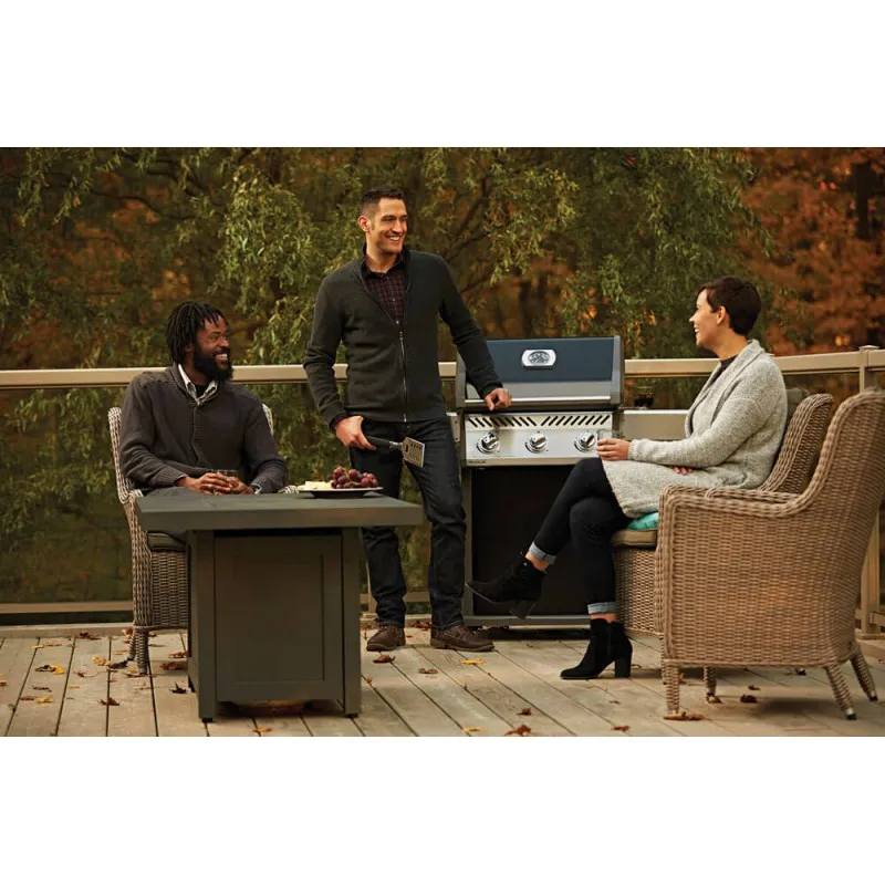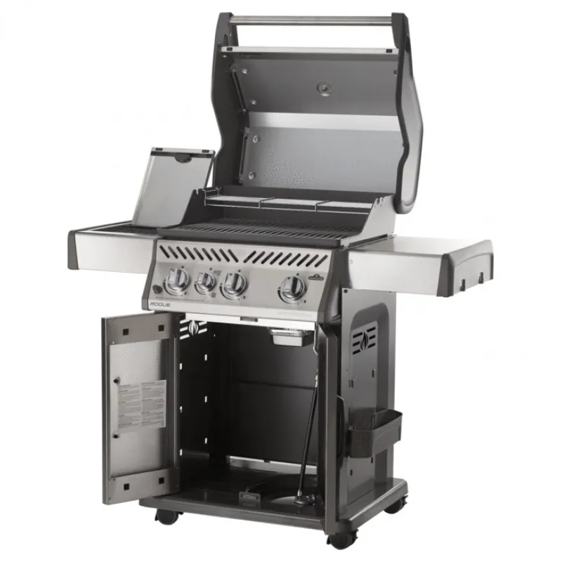 Газовый гриль Napoleon Rogue 425SB в черном цвете отличается оптимальным размером, практичностью и проверенными годами технологиями конструкции. Корпус гриля изготовлен из высококачественной стали с фарфоровым покрытием. Три основные трубчатые горелки из нержавеющей стали. Для равномерного распределения жара защитные пластины над горелками размещены на двух уровнях. Дополнительная боковая горелка на складном столике. Система мгновенного зажигания JETFIRE быстро вводит гриль в эксплуатацию. Двусторонние чугунные барбекю-решетки запатентованной волнистой формы WAVE. Дополнительная решетка для подогрева. Крышка гриля оборудована термометром ACCU-PROBE. Оба боковых складных столика имеют крючки для подвешивания аксессуаров. Закрытое нижнее отделение с углубленной нишей для газового баллона. Гриль передвигается на колесах, которые имеют надежные фиксаторы. В газовом гриле Napoleon Rogue 425SB есть все необходимое, чтобы с удовольствием готовить любимые блюда барбекю для своей семьи и друзей.
