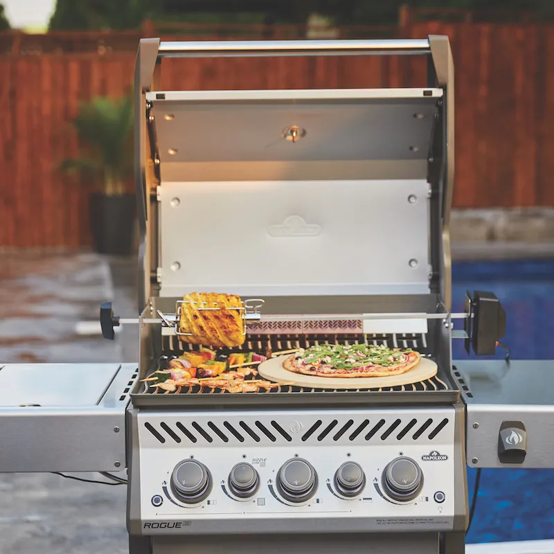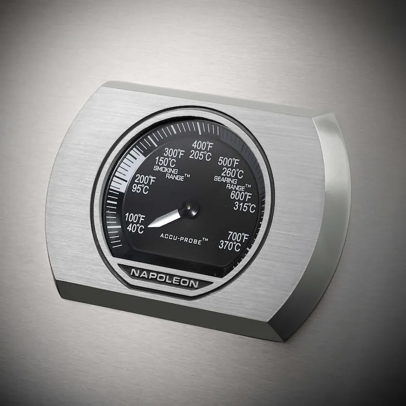Две полки предлагают практичное пространство для приготовления пищи, сзади находится инфракрасная трубчатая горелка, которая используется с вертелом, придавая сочный вкус вашей еде с карамелизованной корочкой. Еще одна очень полезная функция - датчик Accu-Probe для обеспечения оптимальной температуры приготовления.