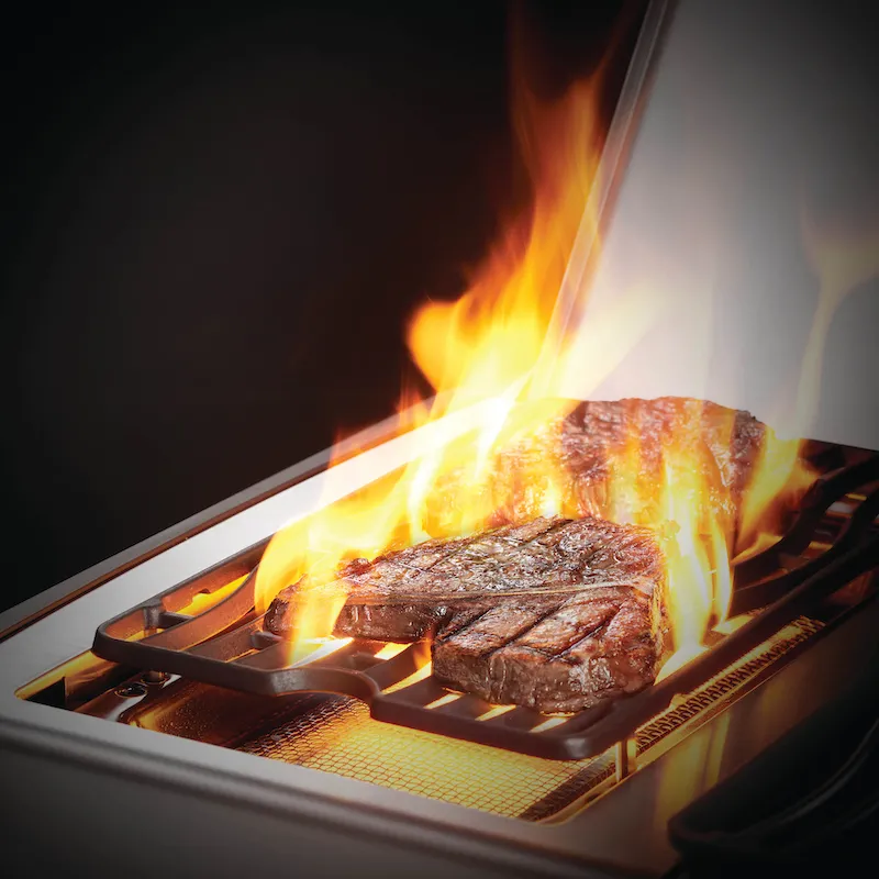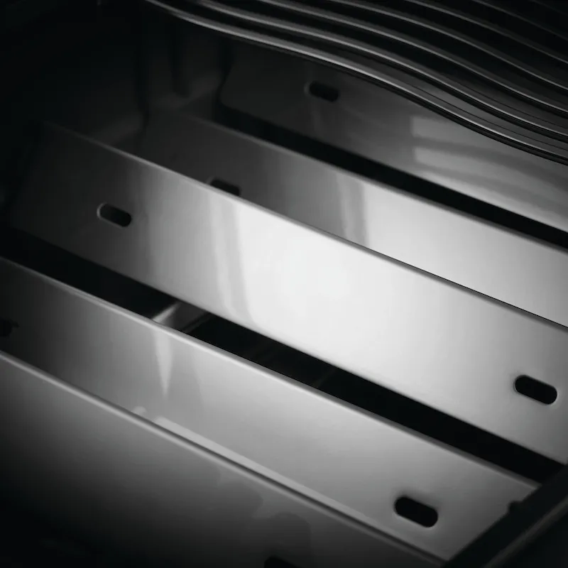 Чтобы равномерно распределить тепло, пластины испарители размещаются между горелками и над ними каскадно. Эти пластины также испаряют любые капли и жир, чтобы ваша еда стала еще лучше.