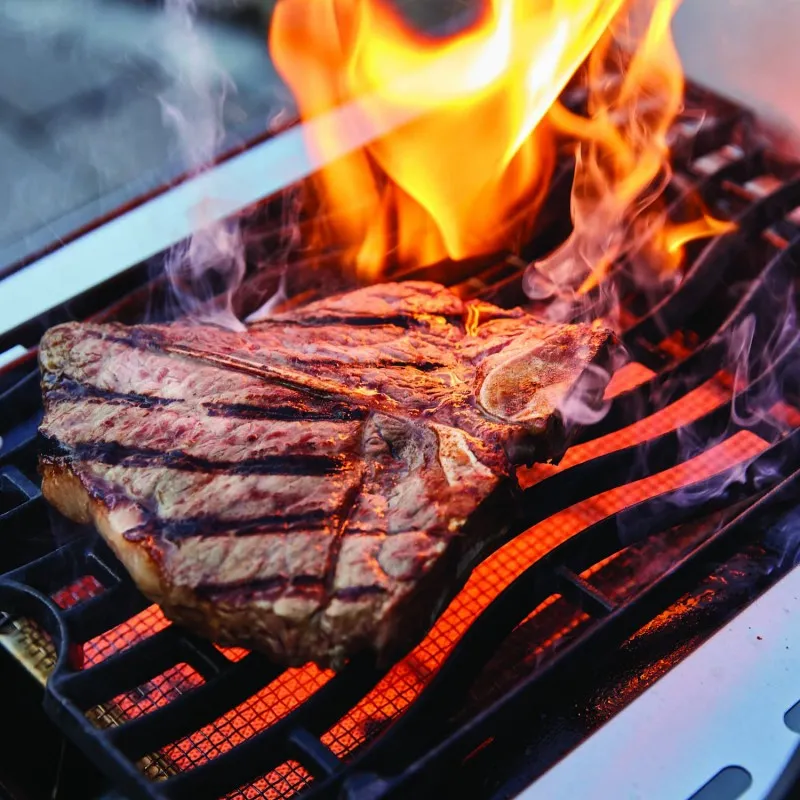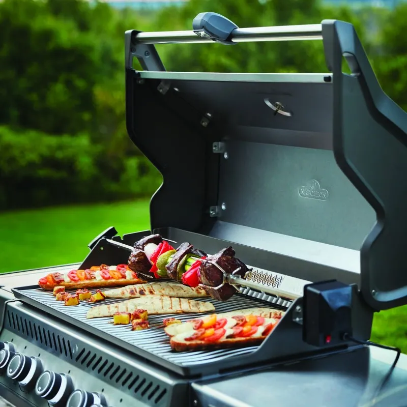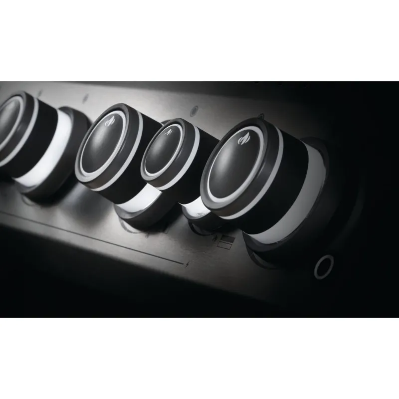 Высокая верхняя крышка предлагает динамичный потенциал приготовления, а дополнительное освещение регуляторов позволяет увидеть на какую мощность включена та или иная горелка гриля. Обширное пространство на боковой полке гарантирует, что у вас всегда будет достаточно места, чтобы добавить последние штрихи при приготовлении блюд.