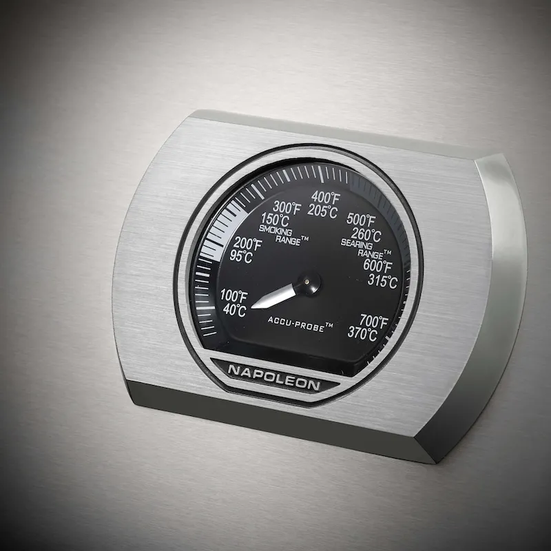 На крышке гриля есть датчик ACCU-PROBE, чтобы вы могли определить правильную температуру внутри и убедиться, что все ваши продукты будут приготовлены до совершенства.