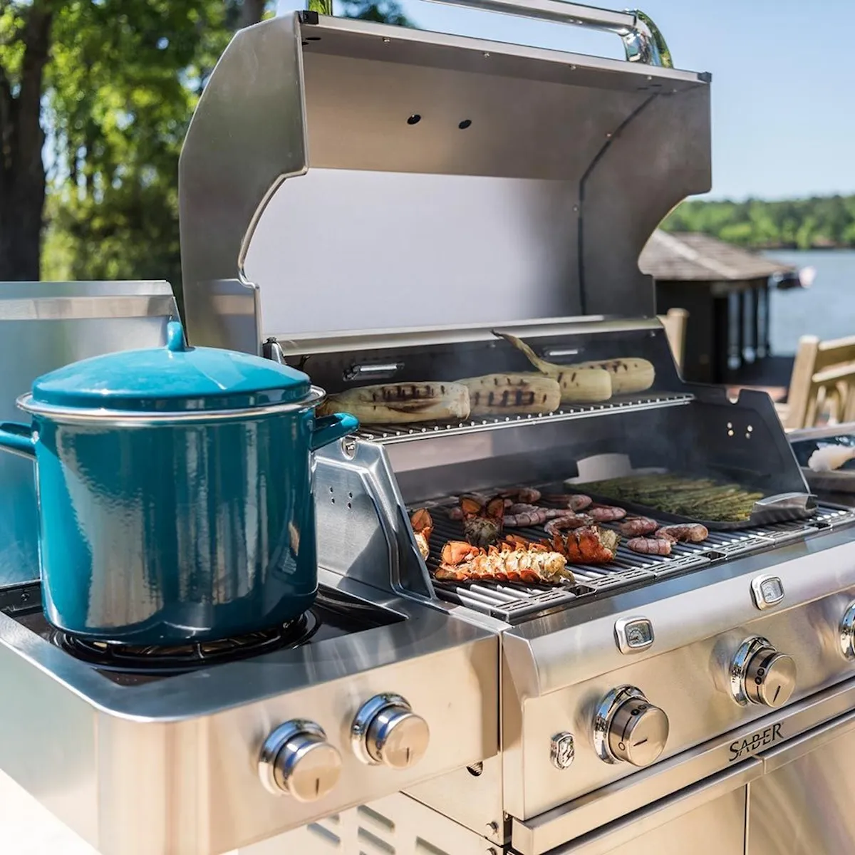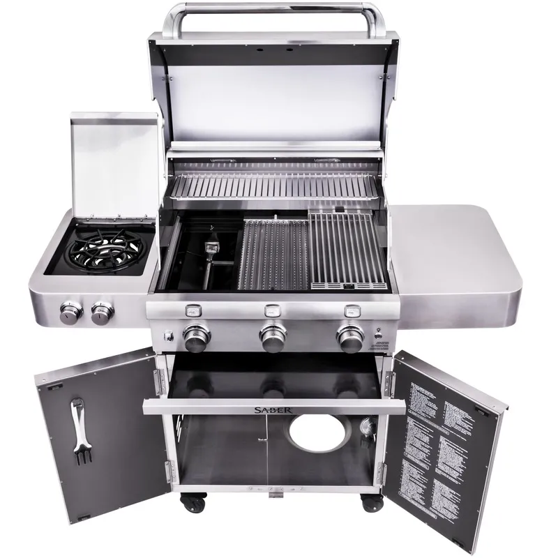 Гриль Saber, цена которого в нашем магазине вас приятно удивит, использует инновационную запатентованную систему приготовления, которая генерирует инфракрасное тепло. Лучистая энергия, в отличие от конвекционного тепла, используемого в традиционных газовых грилях, позволяет идеально приготовить пищу.
