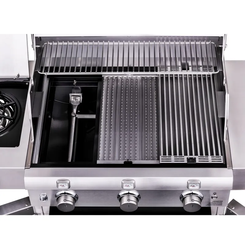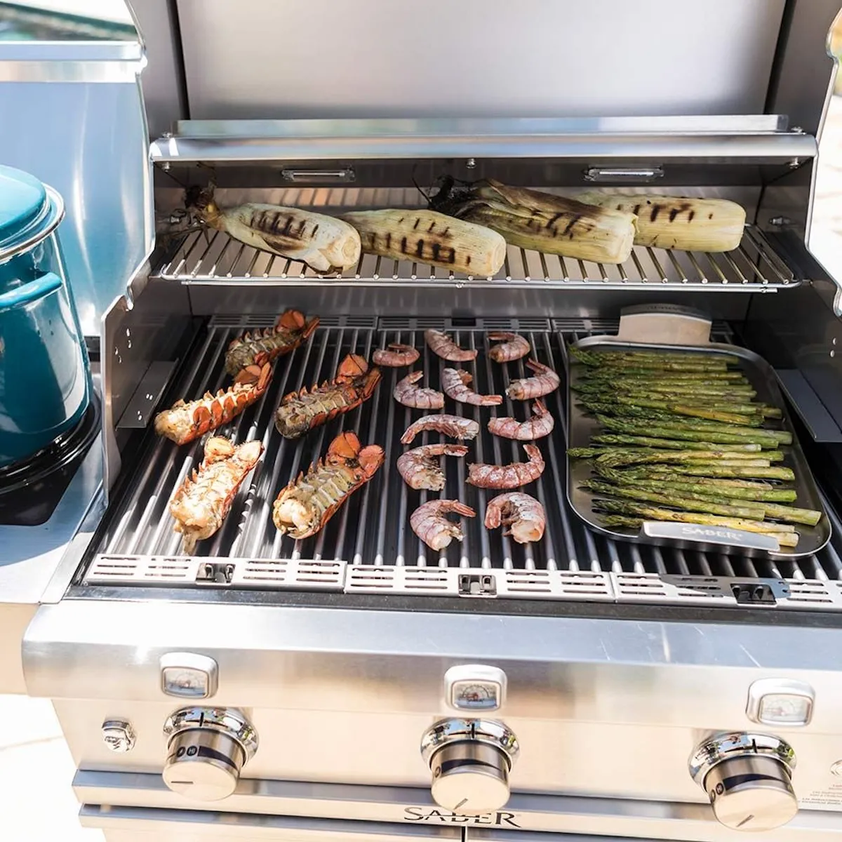 Совершенный газовий инфракрасный гриль Saber SS 500 для самых требовательных. Изготовлен из высококачественной нержавеющей стали AISI 304 и чугуна, гриль SABER спроектирован, чтобы выдерживать долгие годы интенсивной эксплуатации. Большинство соединений этого надежного гриля являются сварными, что обеспечивает исключительную долговечность. Опытные пользователи оценят независимые зоны приготовления, созданные каждой отдельной горелкой, регулируемую дополнительную решетку, профессиональные термометры, электронное зажигание. Запатентованная система приготовления SABER исключает возгорание и равномерно нагревает, обеспечивая стабильные результаты приготовления на гриле каждый раз.