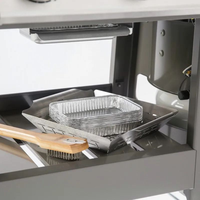- усовершенствованная система очистки: излишки соков и жира, не испаренные пластинами Flavorizer®, свободно стекают в одноразовый поддон, расположенный по центру гриля, для простой утилизации;