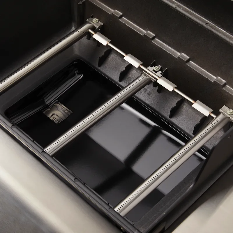 Вы просто снимаете центральную часть рабочей решетки и добавляете принадлежность Weber GourmetBBQSystem по вашему выбору. Это может быть, например, камень из специального материала для пиццы и выпечки, сковорода Wok и многое другое. Герметичная конструкция тележки с запирающимися створками обеспечивает место для хранения аксессуаров, посуды, специй и прочих полезных принадлежностей Weber.