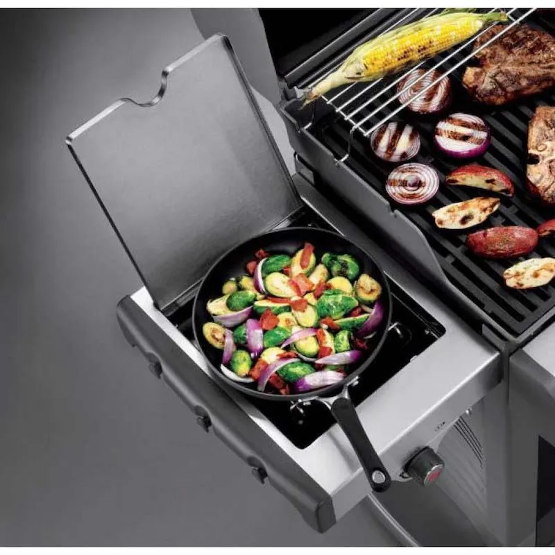 В элегантной крышке газового гриля Weber Spirit Premium S-330 GBS из нержавеющей стали есть встроенный термометр, с помощью которого Вы всегда можете следить за температурой. Благодаря электронной системе перекрестного зажигания и трем горелкам из нержавеющей стали можно мгновенно зажечь свой гриль и обеспечить постоянный поток газа по всей поверхности гриля. С помощью трех конфорок гриль можно легко подготовить к прямому или косвенному способу готовки. На гриле можно готовить от маленьких и больших кусков мяса до хлеба и пиццы, даже до десертов. Кроме того, в модели есть практичная зона для поджаривания, которая идеально подходит для стейков. Также в комплекте: мощная боковая конфорка, на которой можно готовить теплые гарниры и соусы, пока еда готовится на решетке гриля. Пластины-ароматизаторы из нержавеющей стали Spirit Premium S-330 GBS отводят жир благодаря своей уникальной угловой форме и, таким образом, предотвращают возгорание. При этом на нем испаряются капающие соки, которые придают блюдам на гриле восхитительный аромат.