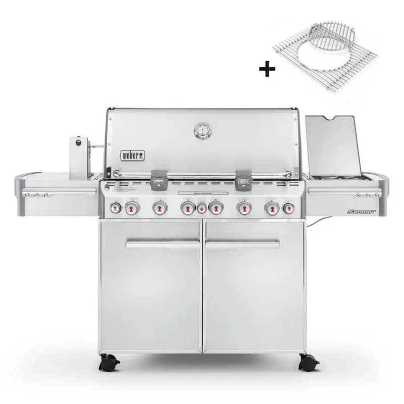 Газовый гриль Weber Summit S-670 — это уже полноценное профессиональное решение, дающее колоссальны возможности для приготовления разнообразных блюд. Наличие 6 горелок, мощность в почти 30 кВт и максимально прочная конструкция делают такой газовый гриль для дома тем приобретением, которое будет служить долгие годы без малейших замечаний. Этот роскошный гриль Hi-End (хай-энд) класса с шестью горелками и множеством технологичных элементов обладает всеми функциями, о которых можно только мечтать. Готовьте бургеры на решетке или курицу с румяной корочкой на вертеле и добавляйте любым блюдам аппетитный аромат копчения. Газовый гриль Summit S-670 изменит ваше представление о классическом гриле. Если же прибавить к этому гарантию производителя на модель Summit S-670 сроком до 10 лет, то это делает покупку еще более выгодной и оправданной.