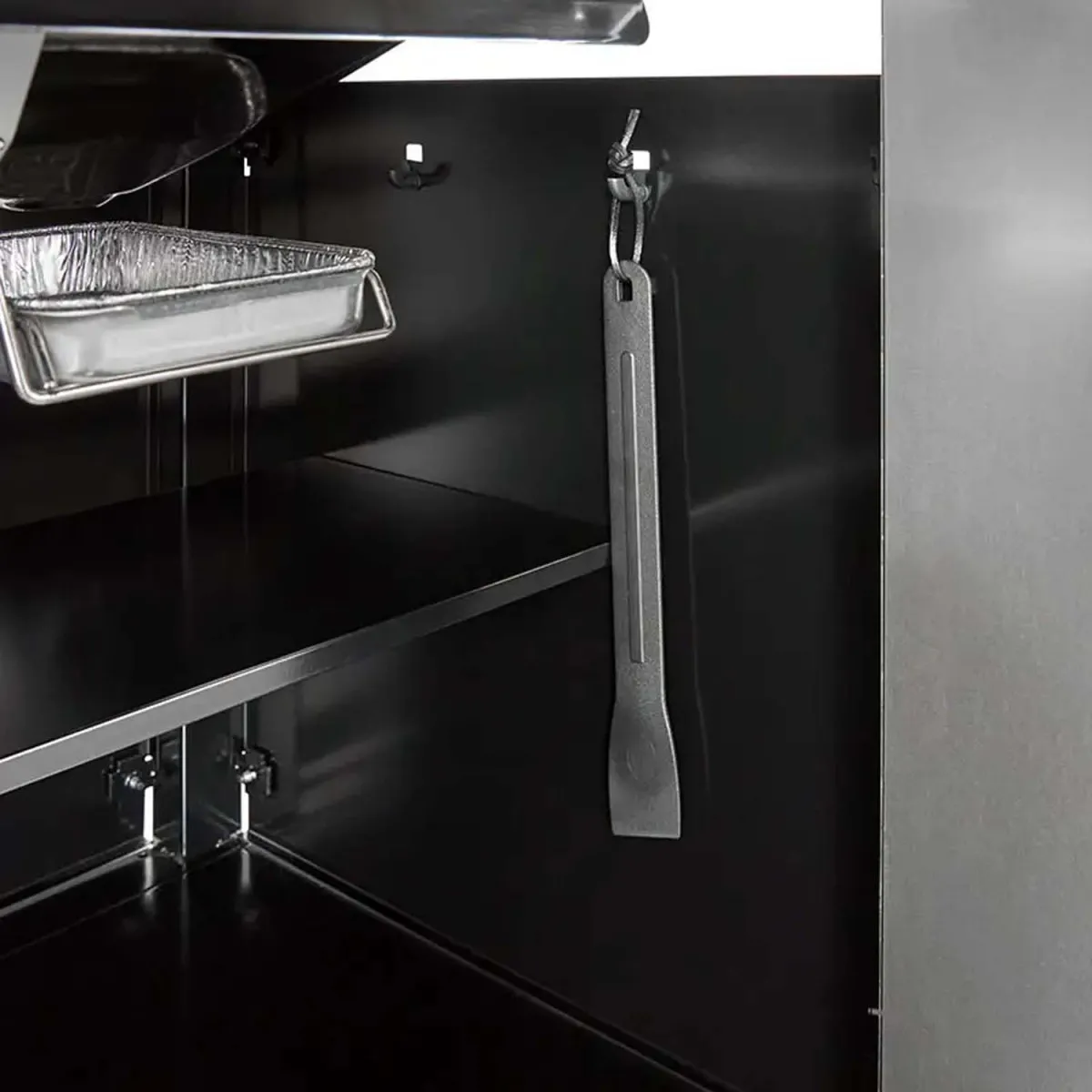 - Возможность безопасного хранения баллона до 24,5 л в шкафу гриля.